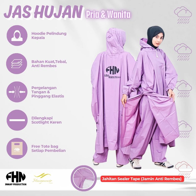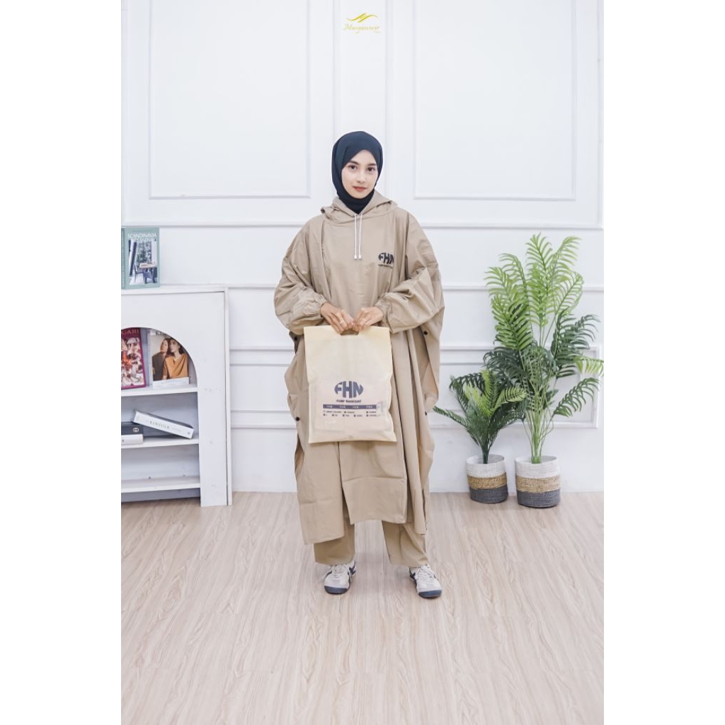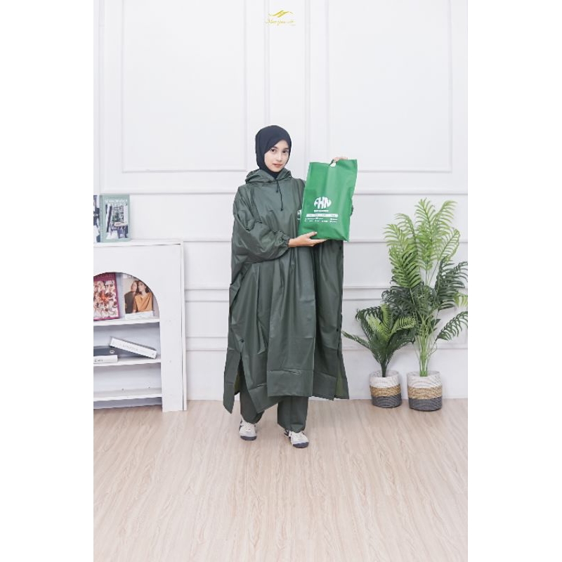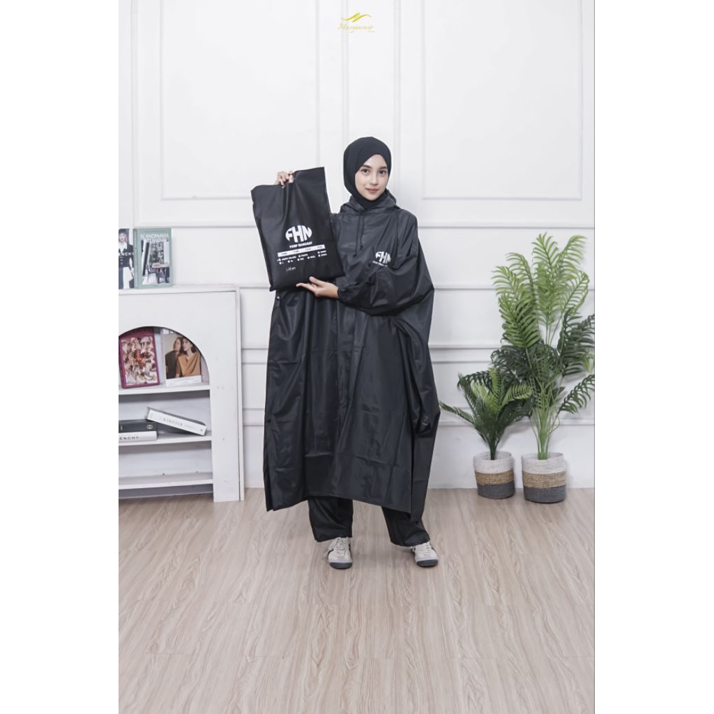 Jas Hujan Mantol Dewasa FHN Ponco/kelelawar+Celana Bahan PVC Tebal||BB45kg-90kg Full Sealing Anti Rembas Tidak Kaku