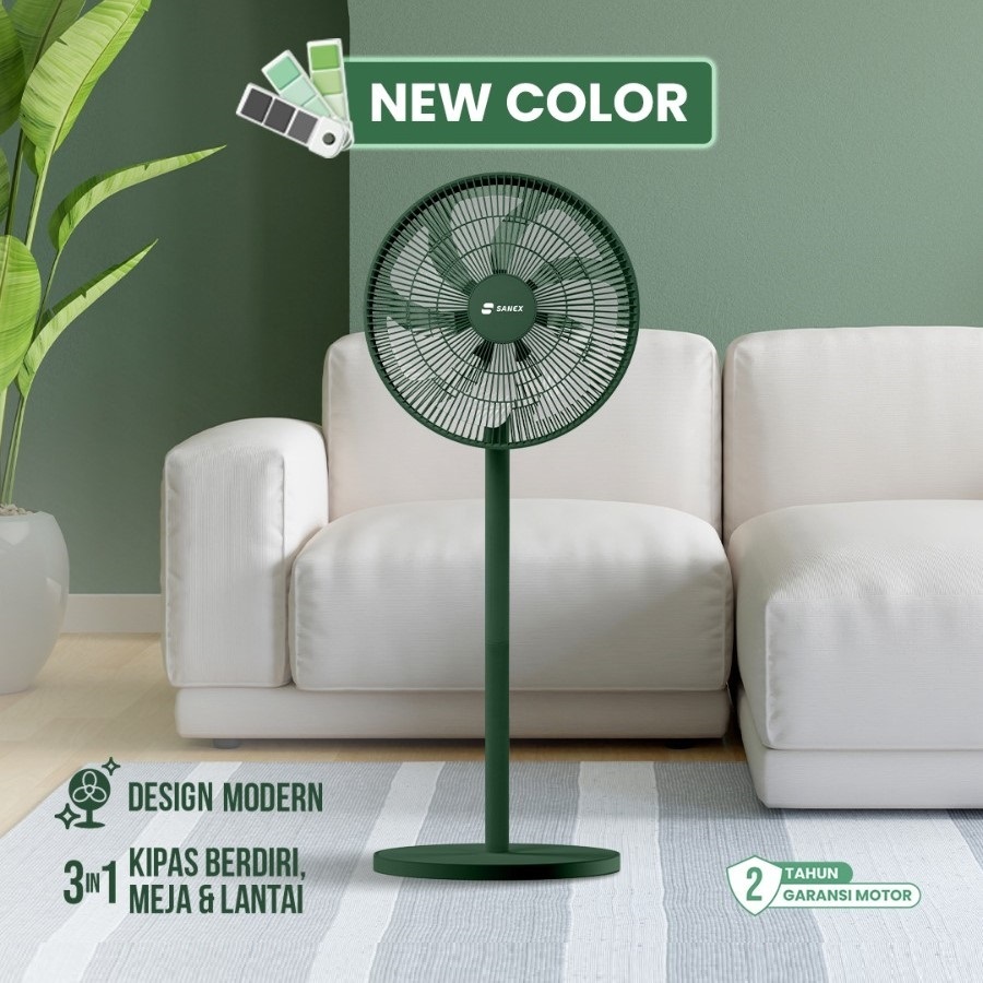 SANEX Stand & Desk Fan Kipas Angin Meja & Berdiri 2 IN 1 12 Inch 7 Baling SSF-1221 N Design Modern & Minimalis Baling Bening Transparan + Remote