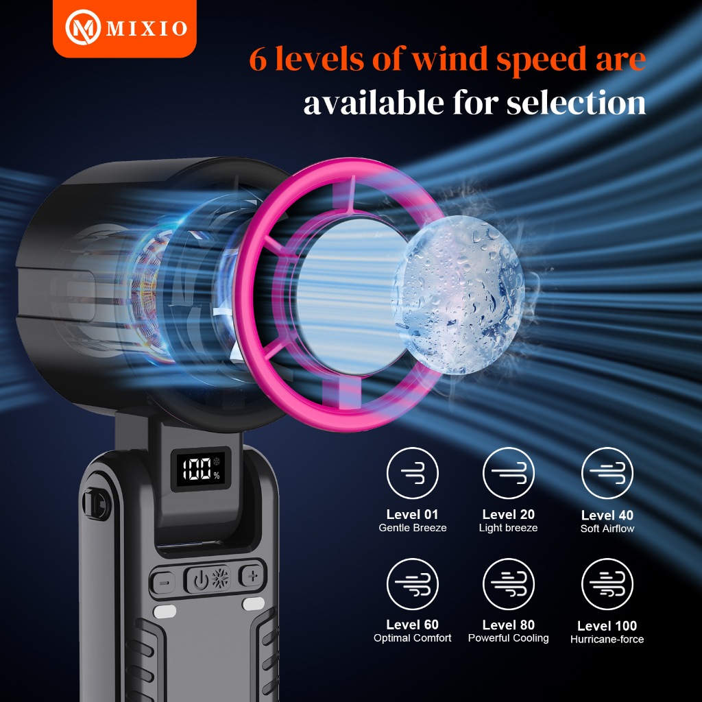 MIXIO GS-13 Kipas Angin Lipat High Speed AC Cooling Fan Turbo Portable 17300Rpm Es Pendingin 4400MAH