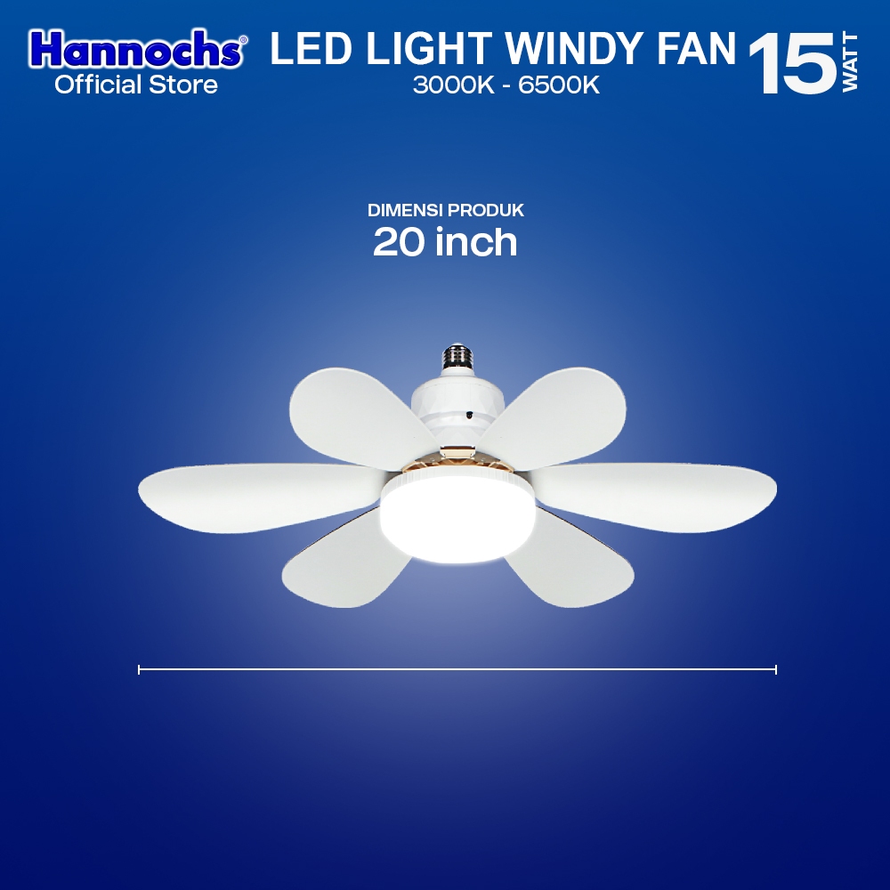 Hannochs Lampu Kipas Angin Plafon LED 2in1 Windy Fan light 15W CCT E27 - Multifungsi Dengan Peredupan Remote Control