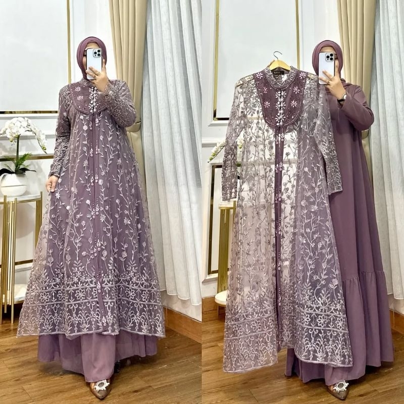 GAMIS SET OUTHER TERPISAH FULL BRUKAT PAYET // Gamis Burgundy Asmara Set Dress mewah elegan