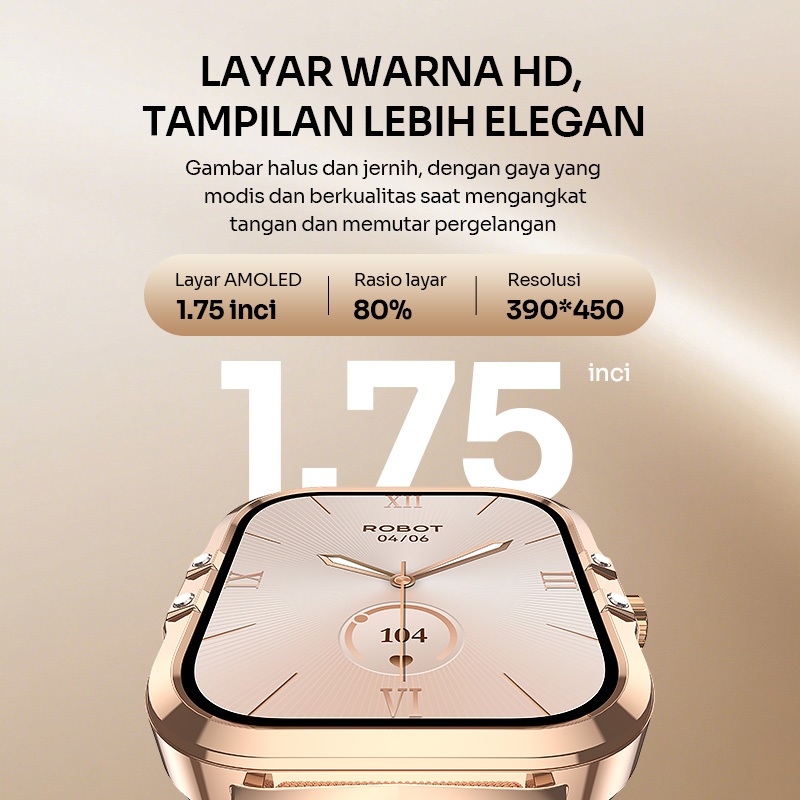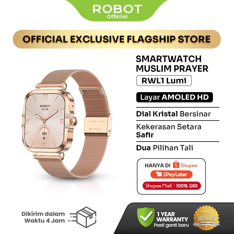 ROBOT Smartwatch RWL1 Lumi Muslim Prayer 1.75 Inch AMOLED Waterproof IP68 Bluetooth Call Dial Kristal Original - Garansi 1 Tahun
