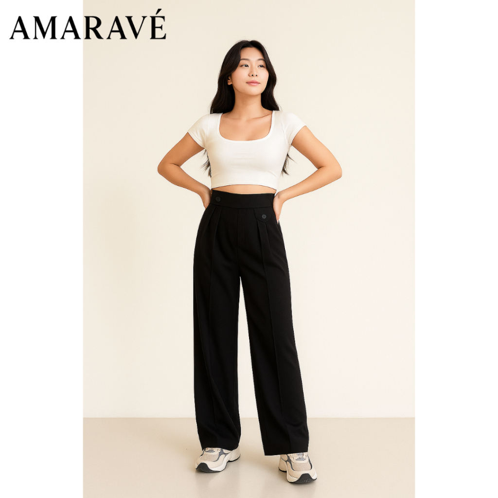 AMARAVE - Oro Pants Celana Panjang Wanita Celana LoosePants Highwaist Celana Bahan Trousers Formal Kerja Kekinian