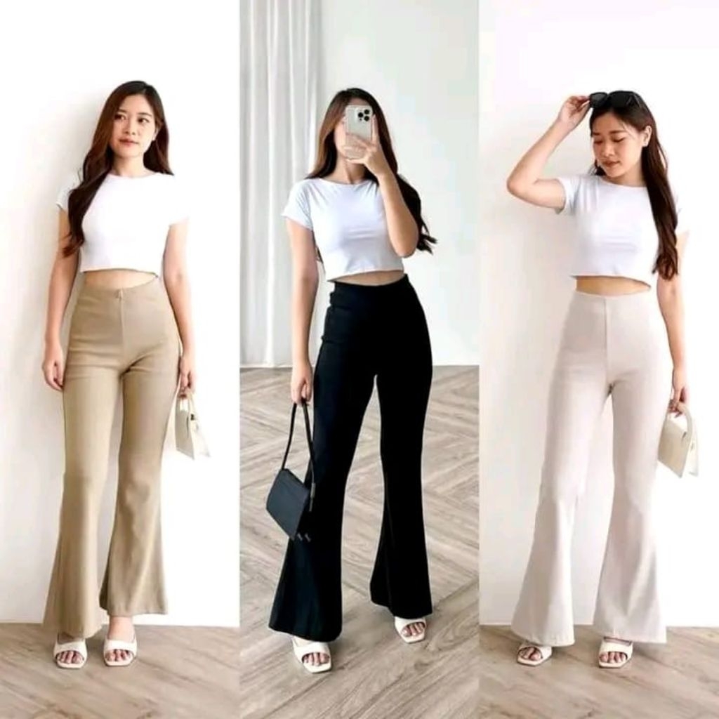 Celana Cutbray Wanita Fit and Flare Pants Cutbray Scuba Pinggang Highwaist Bahan Stretch