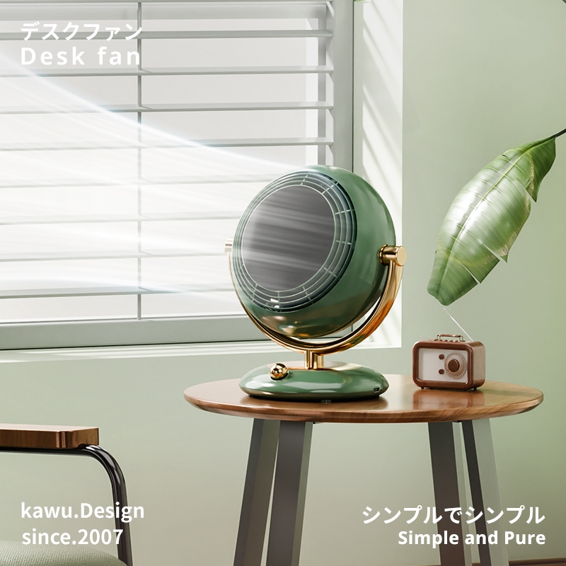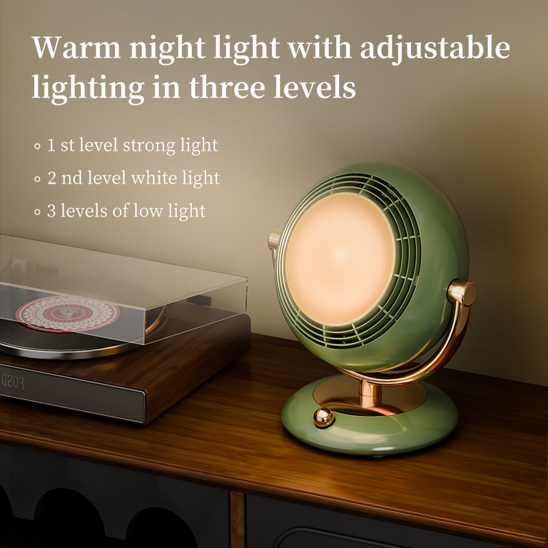Kawu Retro Mini Desk Fan portable USB Dapat Digantung 3 Level Kecepatan Lampu TidurJangkauan Luas