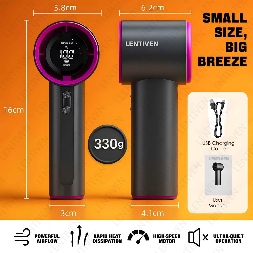 BOEIN LENTIVEN Kipas Turbo Kecepatan Tinggi Portabel Semikonduktor Genggam Fan Pendingin Mini Meja Tampilan Digital Olahraga Dapat Dilipat 5 Kipas GS