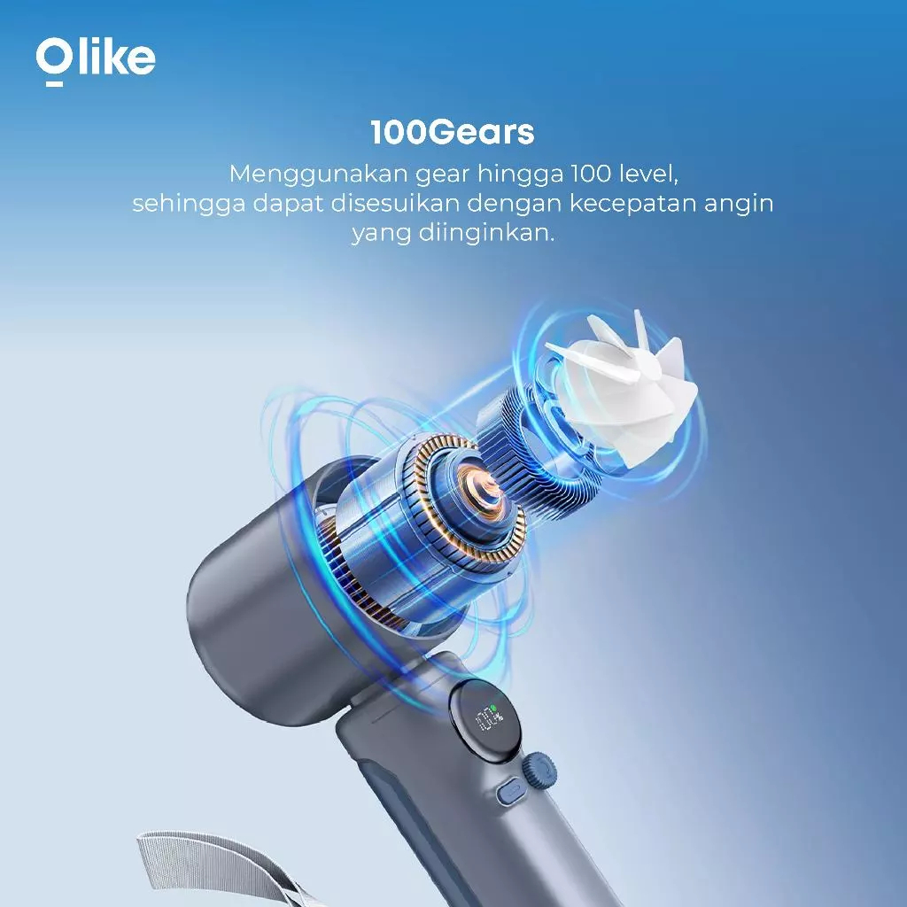 Olike Kipas Angin Mini Turbo PF6 – 100 Tingkat Kecepatan, Baterai 4.000 mAh, Hingga 23 Jam
