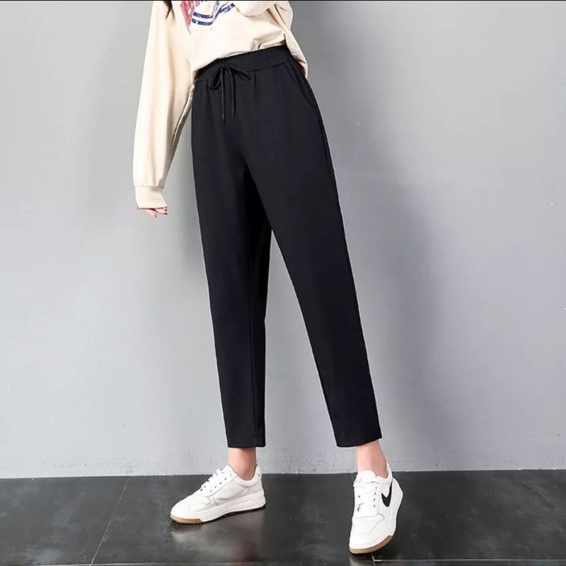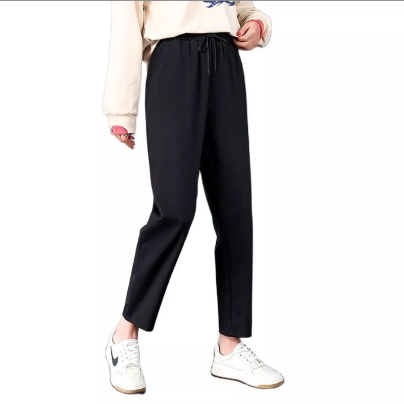 CELANA POLOS WANITA HITAM TALI SERUT L sampai 7xl IMPORT TERBARU BAHAN STRETT not kotak salur