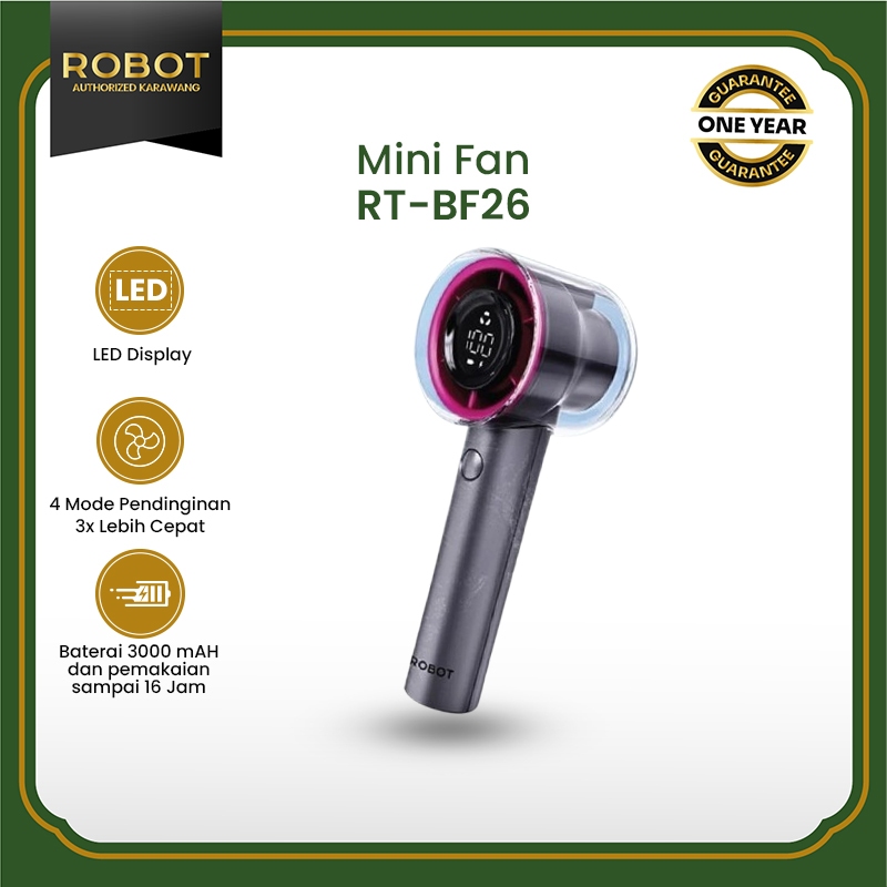 ROBOT Kipas Angin Mini Portable Genggam Powerful Handheld 3000mAh Mini Fan Grey 15000RPM Led Indicator RT-BF26 Original - Garansi 1 Tahun