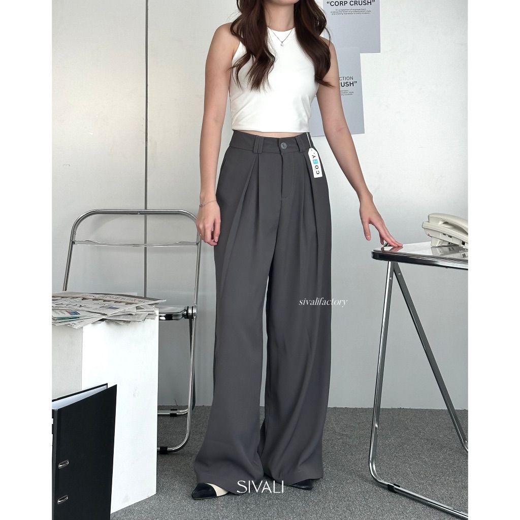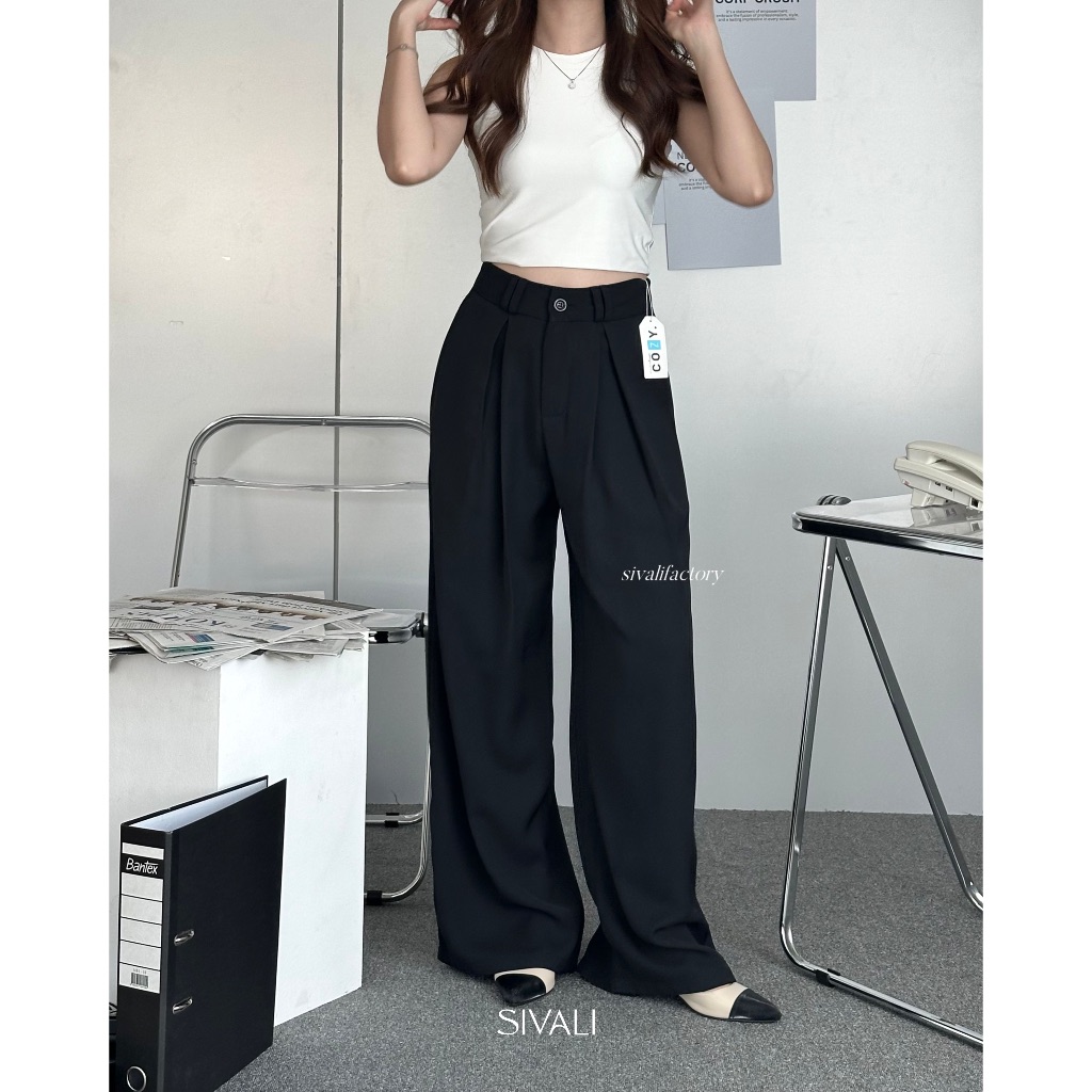 SIVALI Loui Loose Pants - Highwaist Cullote Polyester - Celana Kulot Panjang Wanita Anti Kusut - Celana Kantor Formal Casual | 6010