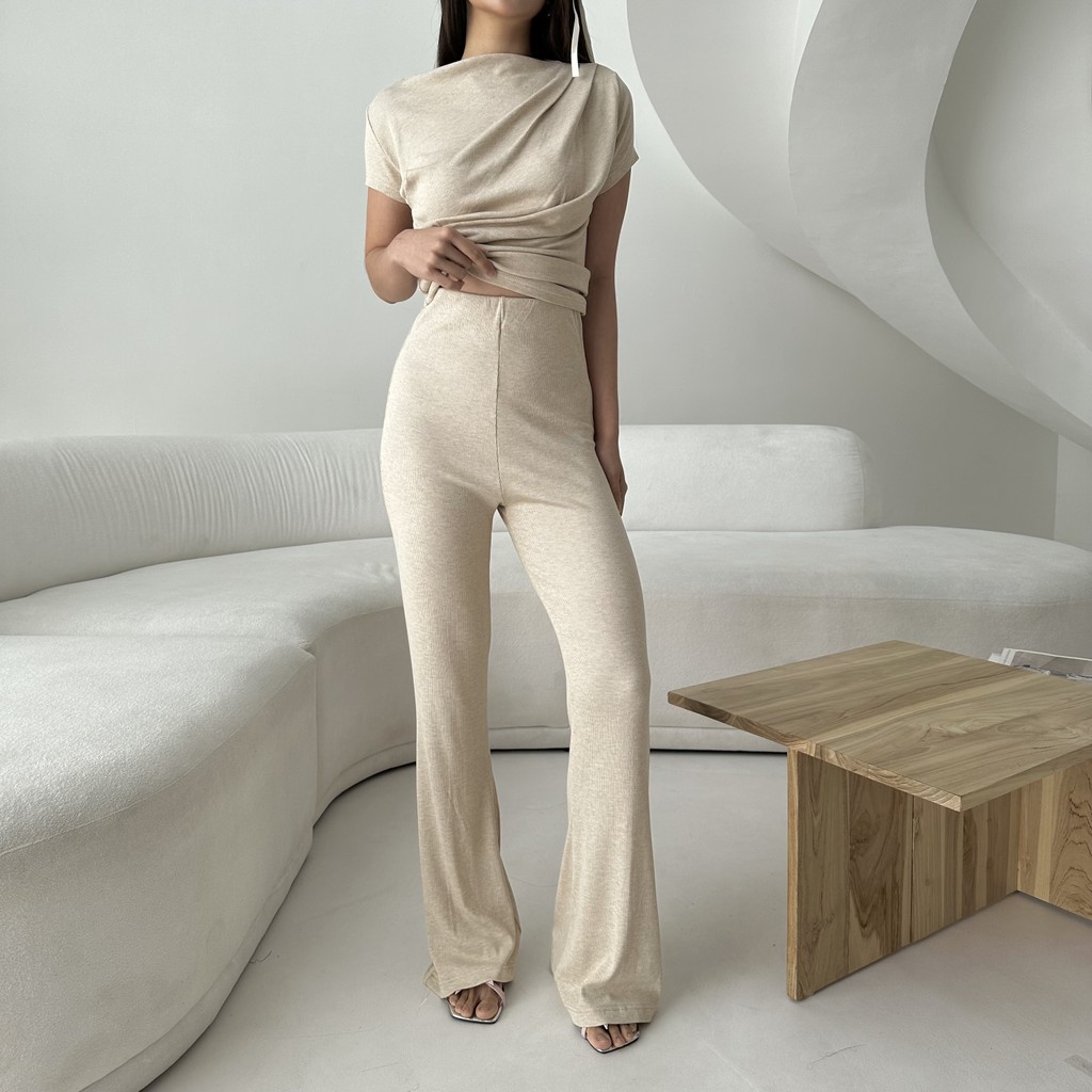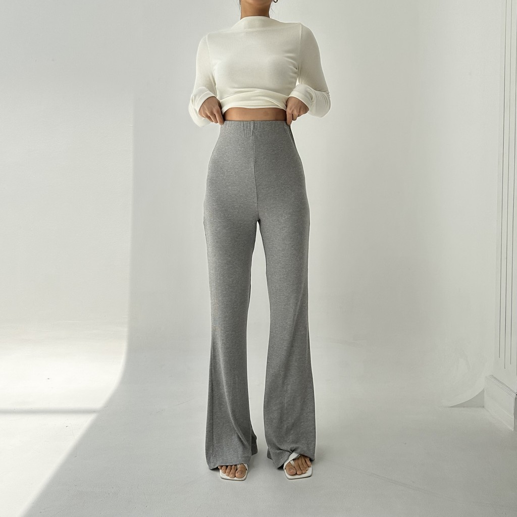 CORA PANTS - Celana Panjang Knit Wanita Long Cullote Pants Highwaist Loose Flare Cutbray Pants Basic Rib Knit Korean Long Trousers Murah Posha