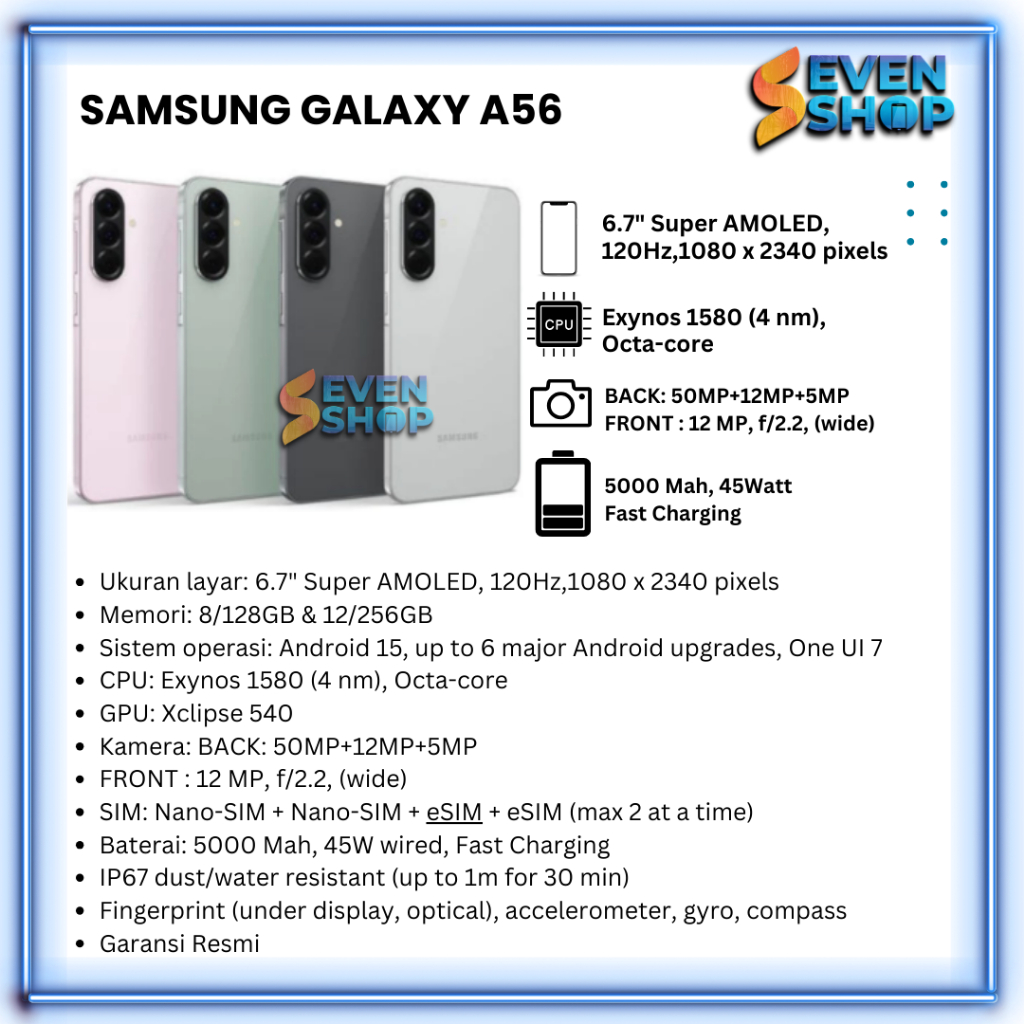 SAMSUNG GALAXY A56 RAM 8/128GB 8/256GB GARANSI RESMI 12 BULAN