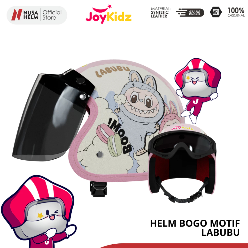 Helm Anak Usia 2 3 4 5 6 7 Tahun Bogo Retro Junior Motif Melody Kaca Datar Packing Kardus