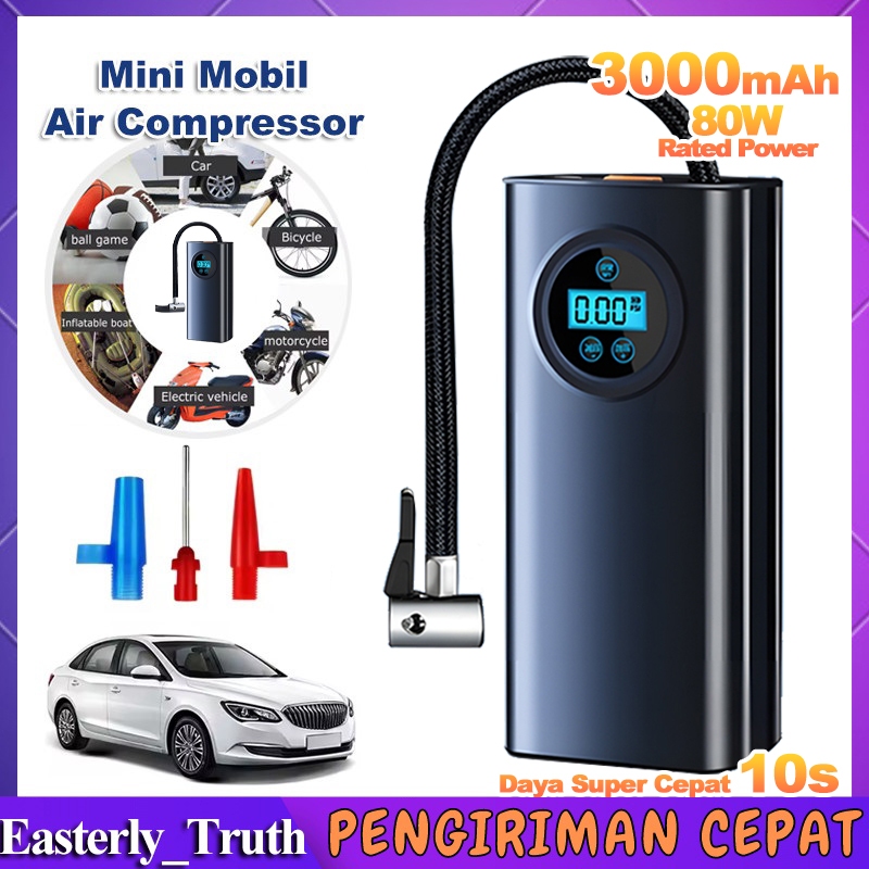 (Stok Siap) Pompa Ban Mobil Sepeda Motor Elektrik Cek Tekanan Angin Listrik Car Air Pump Tire Inflator Portabel