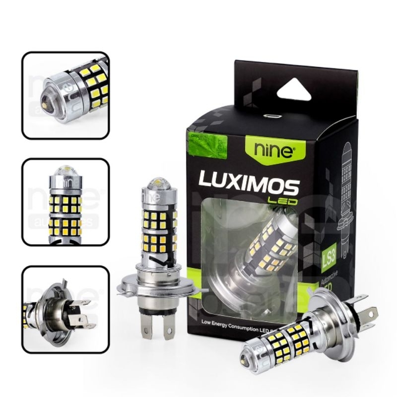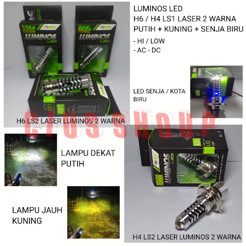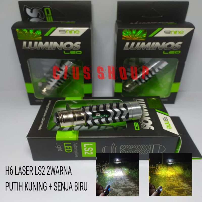 NINE LUXIMOS LAMPU LED H6 / H4 LS2 LS3 LASER 2 WARNA HI LOW PUTIH KUNING + SENJA BIRU PNP AC DC SUPER TERANG