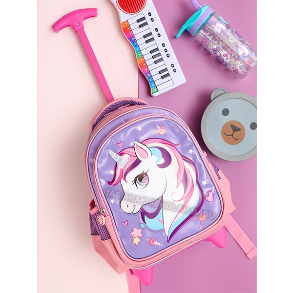 Sale Tas Dorong Trolley Anak Paud / Tk / Play Group Perempuan Gambar Kuda Pony Tanduk Soft Timbul Bahan Tahan Air ( 11 -