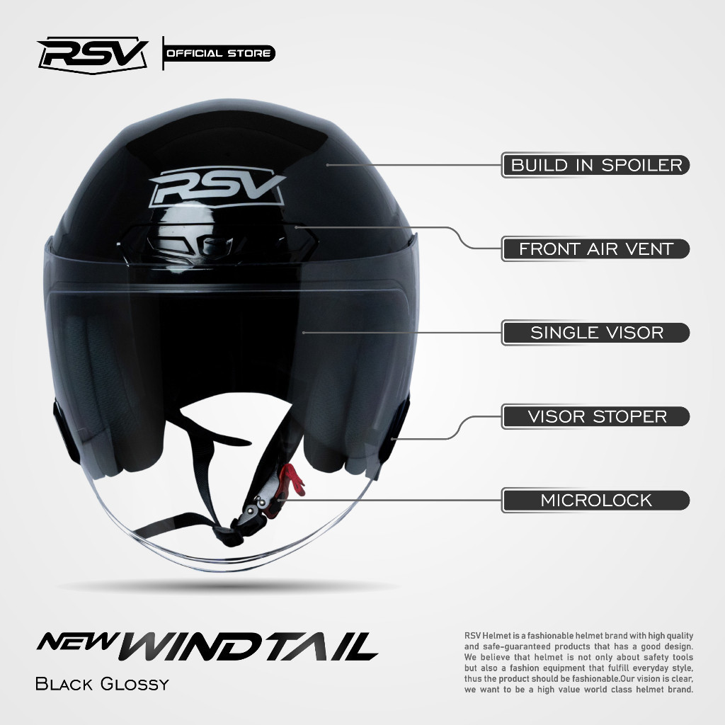 [ORIGINAL RSV] Helm RSV New Windtail Black Glossy - Helm Half Face SNI Unisex Single Visor (FLUX)