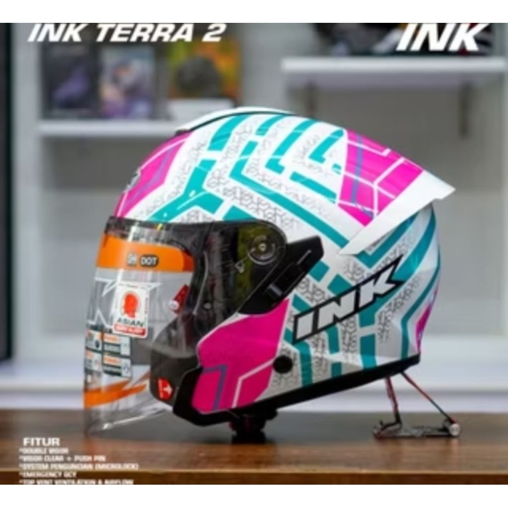 HELM INK TERRA 2 MOTIF #2 WHITE BLUE FUXIA ORIGINAL PULL MOTIP