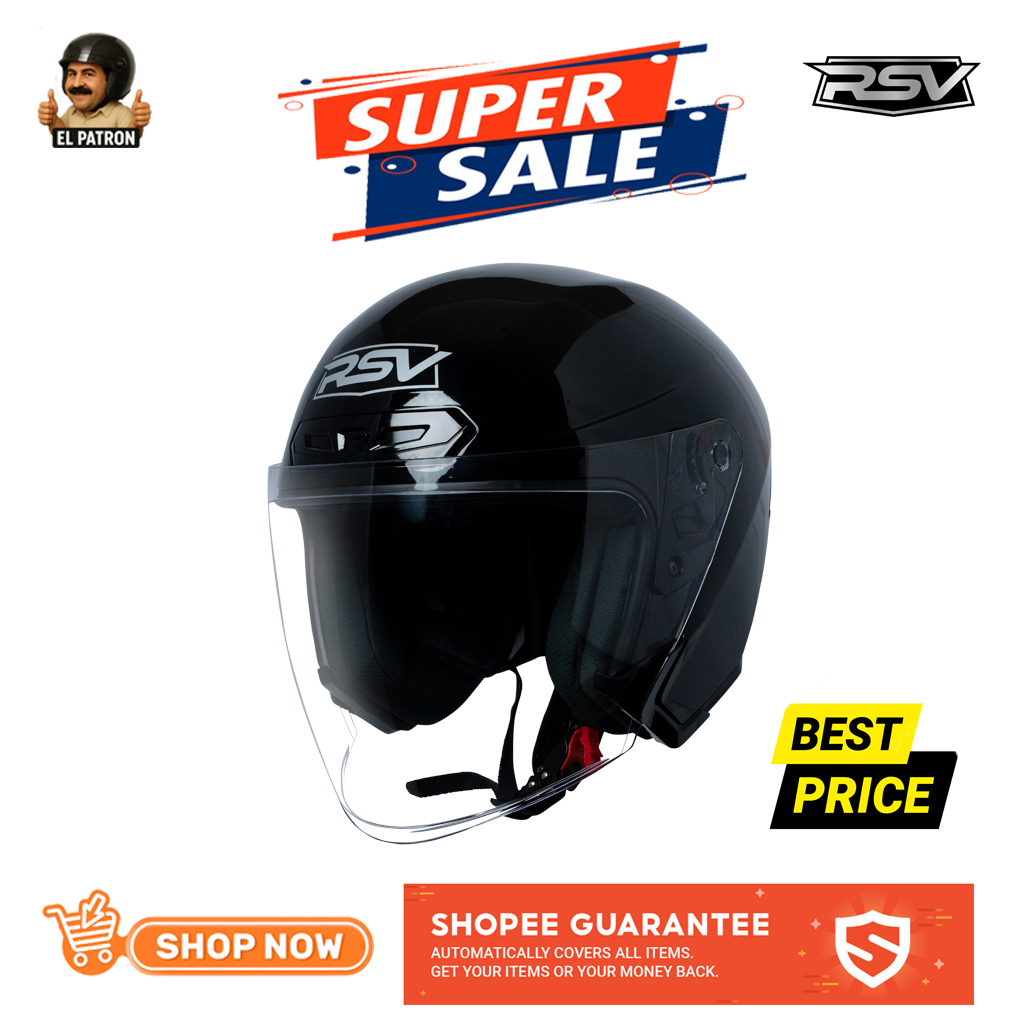 Helm RSV Windtail BLACK Glossy - 100 PERSENORIGINAL Half Face Pria Wanita Motor SNI DOT ECE Ringan Nyaman