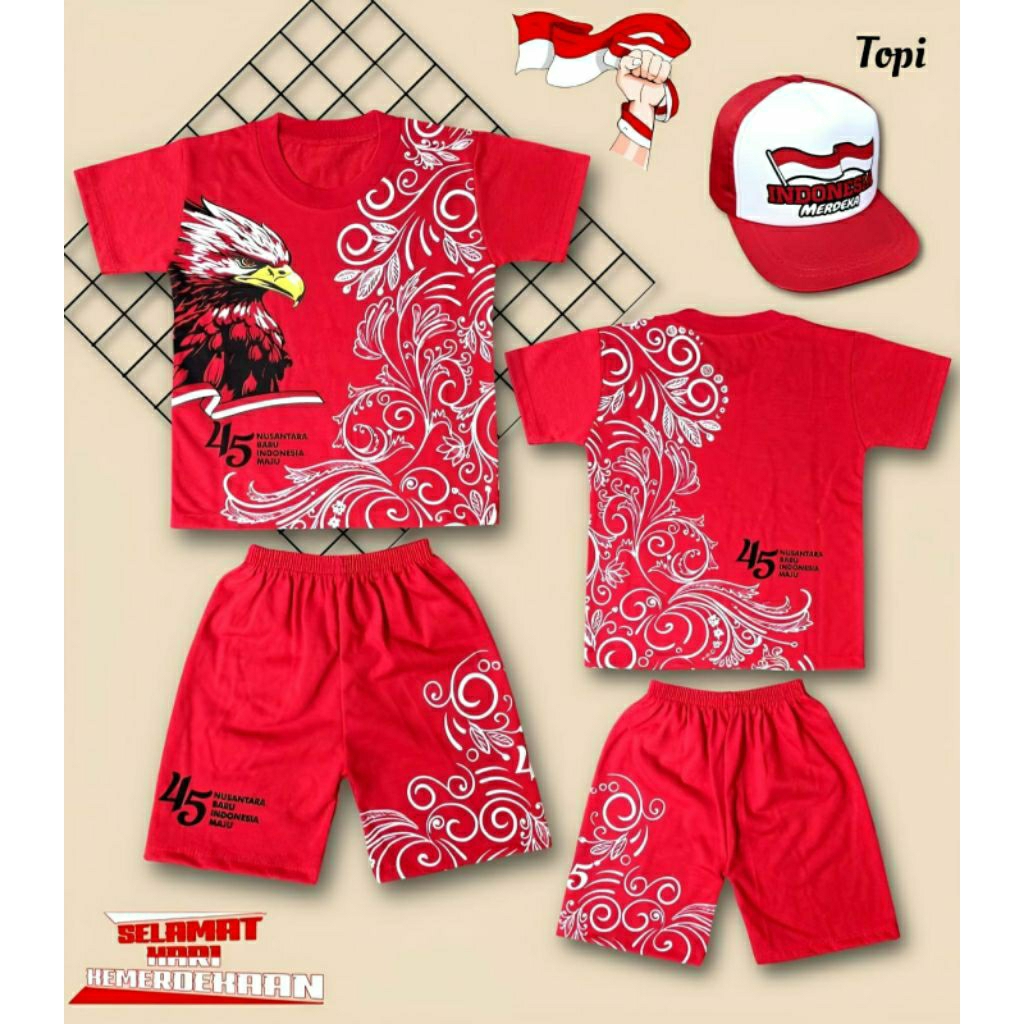 Setelan Baju Anak Kostum 17 Agustus(Ada Topi) /Setelan Baju Kostum Kemerdekaan /Setelan Baju Anak Indonesia Untuk Usia 1
