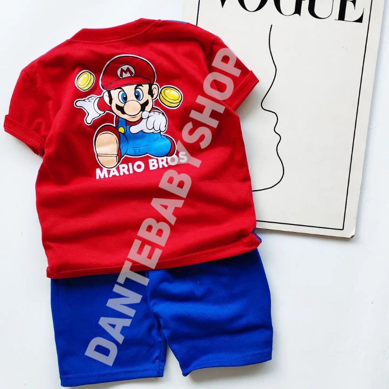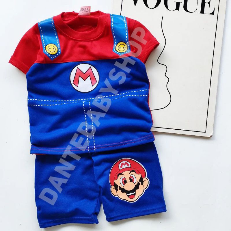 Setelan Baju Anak Mario Bros Kostum Super Mario Bros Ada Topinya Untuk Umur 1-10Tahun