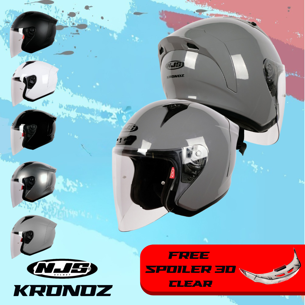 Helm NJS Kronoz Solid Half Face Motorcycle Helmet Free Spoiler Clear