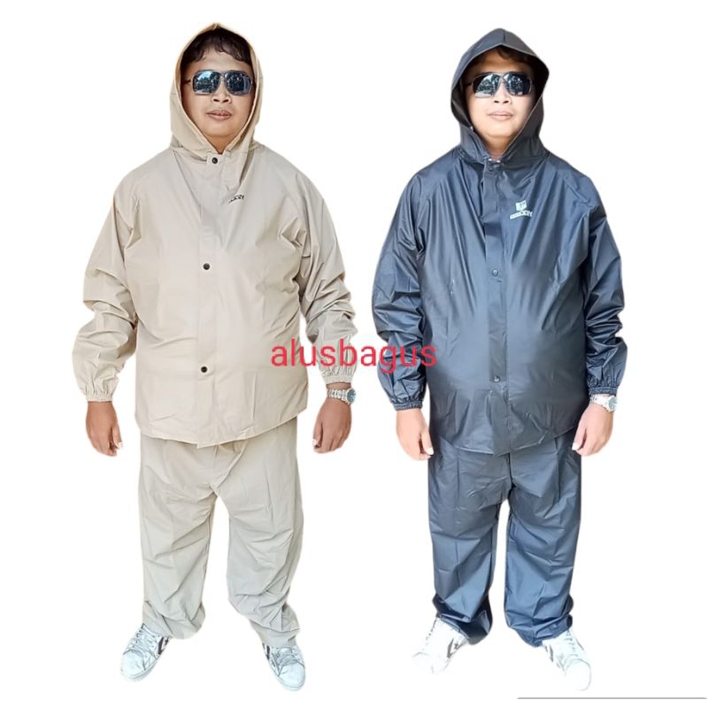 Jas Hujan Jumbo Big Size Mantel Setelan Celana Muat BB 90-160 Kg Pria Wanita Anti Rembes