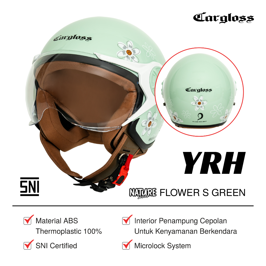 Cargloss YRH Hijab Graphic Retro Helm Half Face - Flower S Green