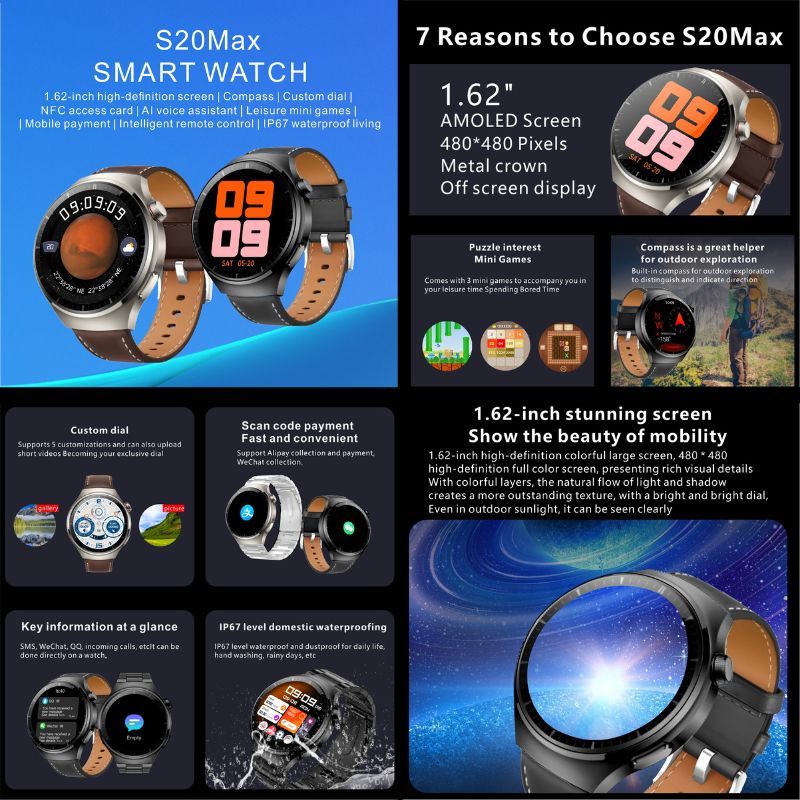 【】100 PERSEN Samsung Jam tangan Smartwatch S20/GT4Max Jam pintar smart watch kelas atas l 2 straps l 1.62-inch AMOLED ultra-clear display l AOD Always On Display l 500+ theme wallpapers 3D dial