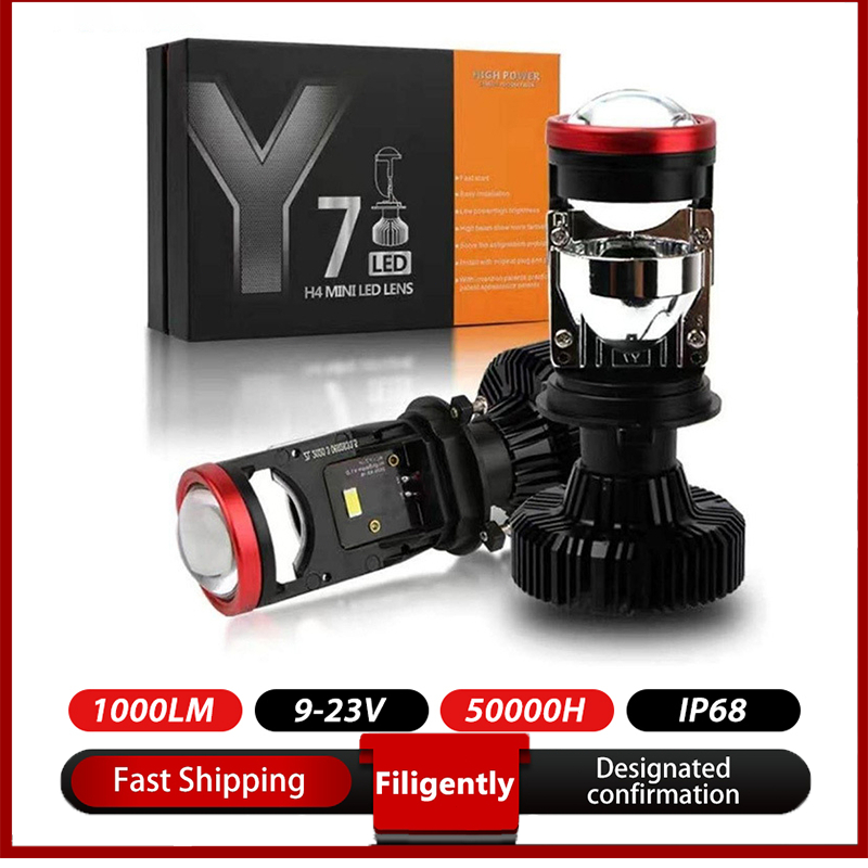 []Lampu Led Mobil Dan Motor H4 Mini PJECTOR PROJIE Y7D SUPER BRIGHT 50 Watt/Dengan kipas angin
