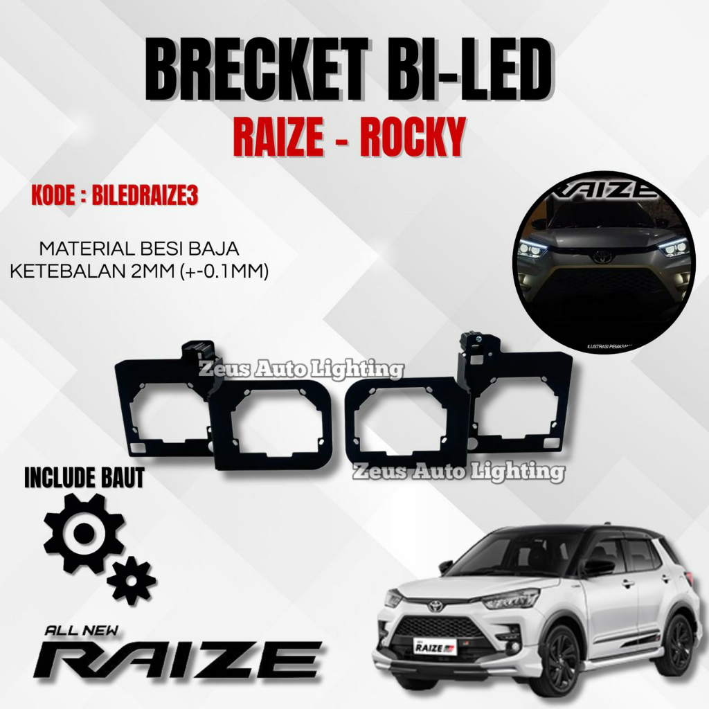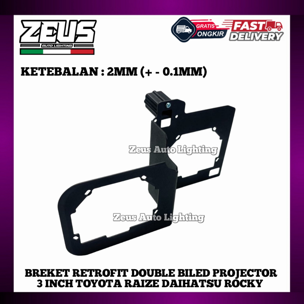 Breket Retrofit Double Bi-LED Projector 3 Inch Toyota Raize / Daihatsu Rocky - Breket Biled Tebal 2mm
