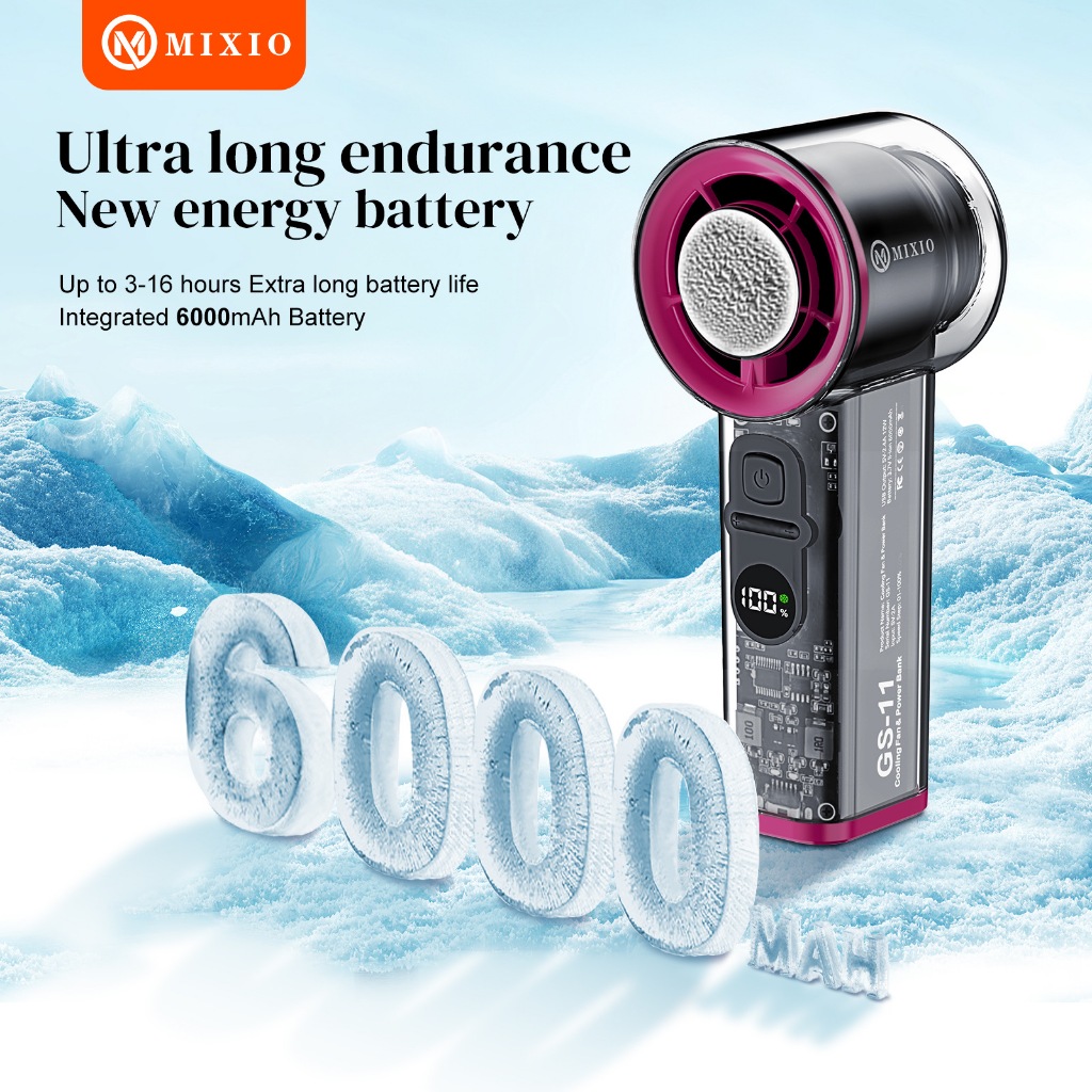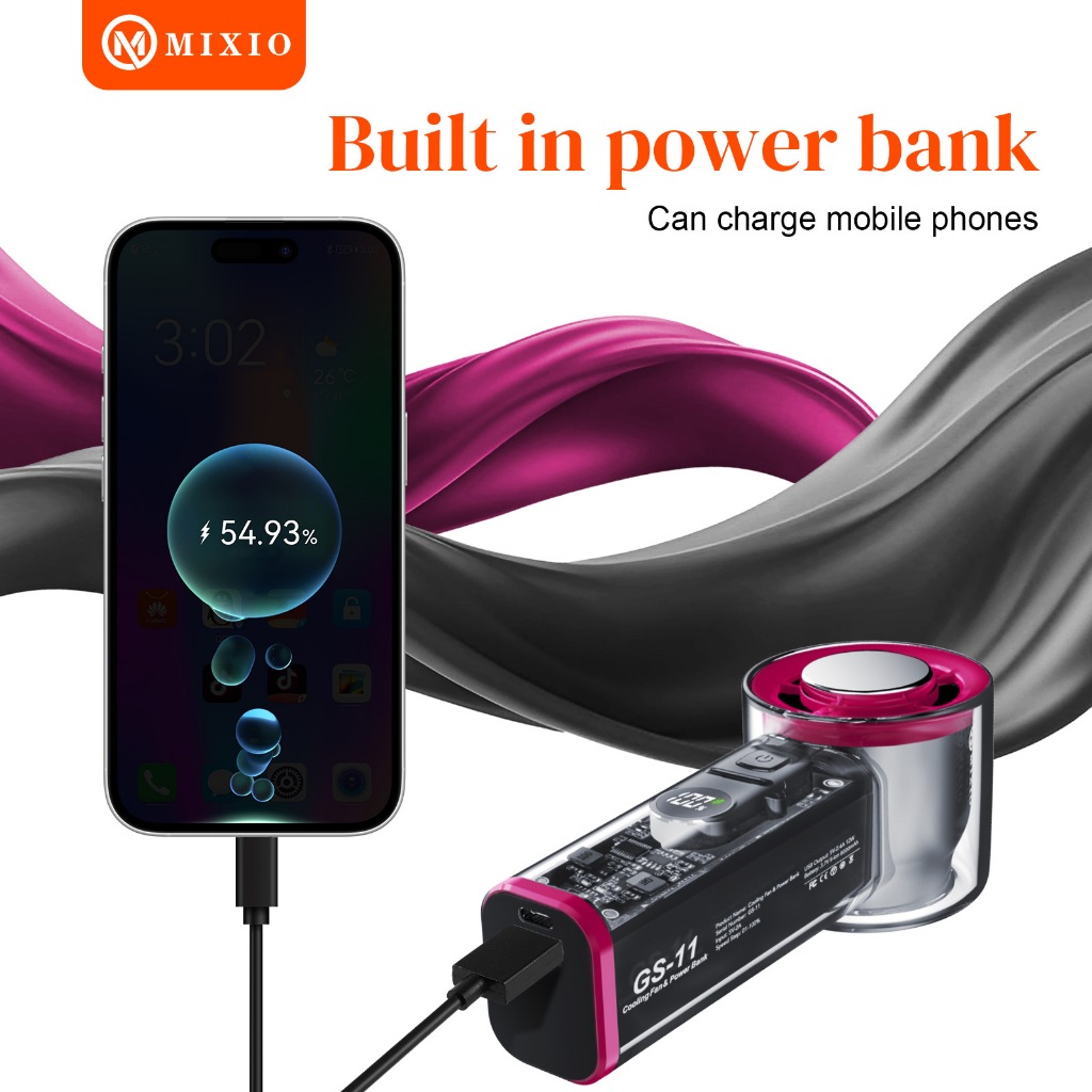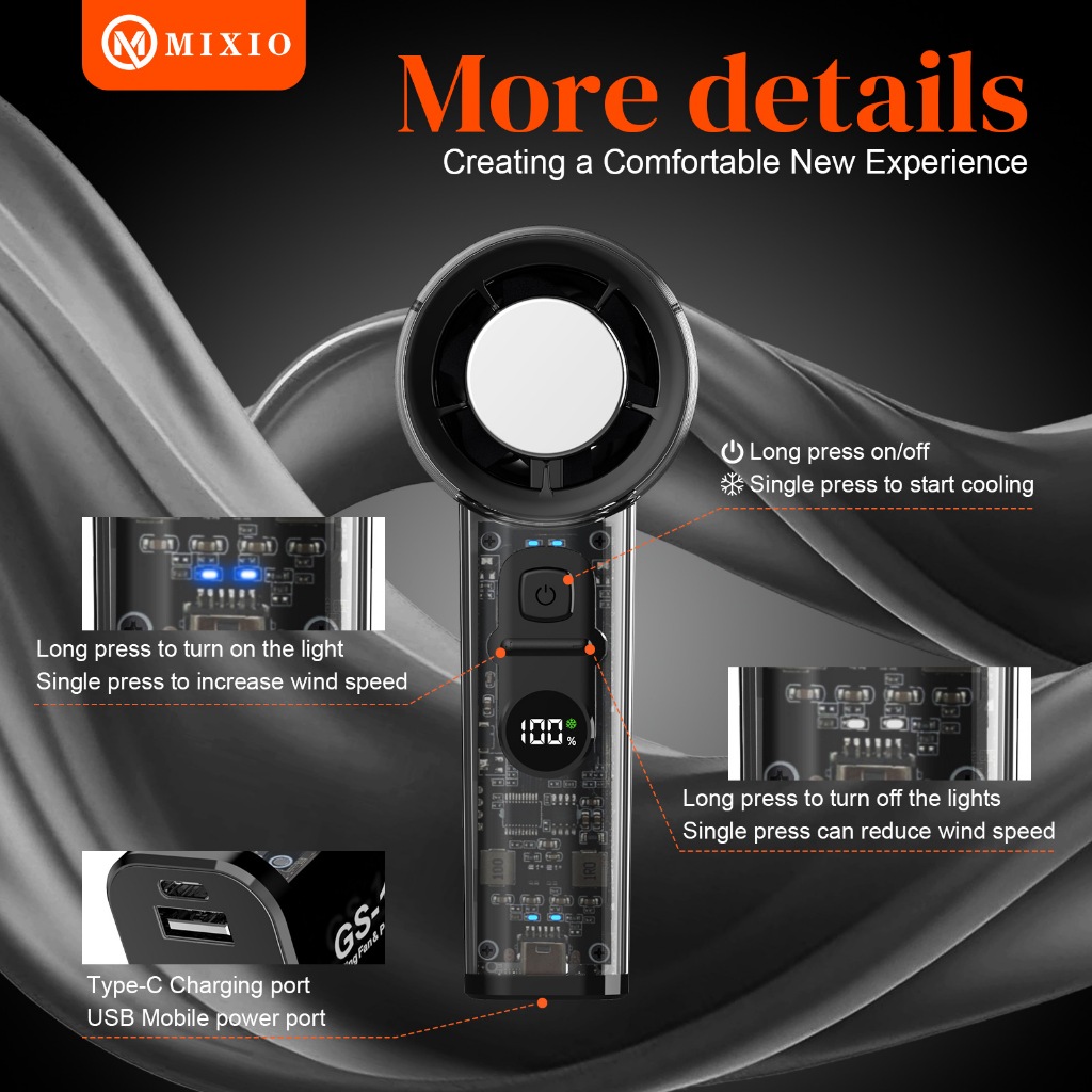 MIXIO GS-11 Kipas AC Cooling Transparant High Speed With Powerbank 6000Mah Fan Portable Kipas Angin Turbo Portable 18000Rpm Es Pendingin