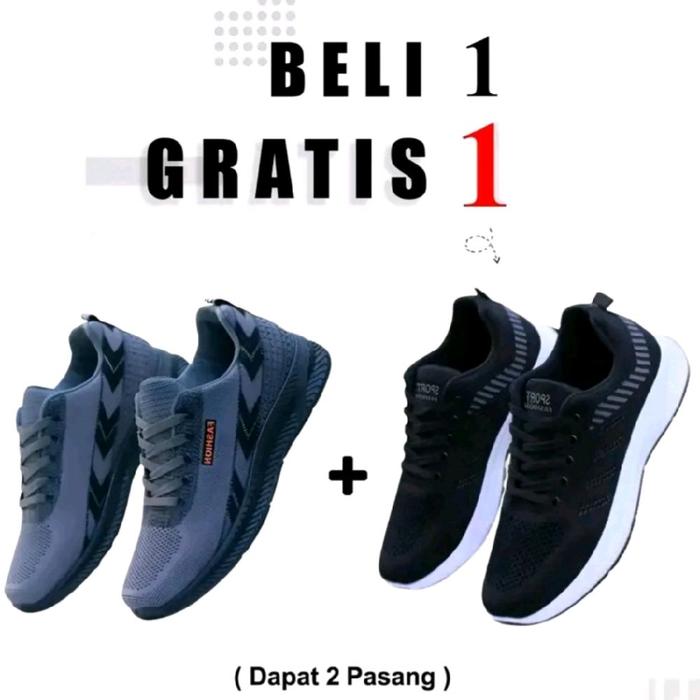 [Star]BELI 1 GRATIS 1 Sepatu Sneakers Pria Wanita Untuk Sekolah Model Sport Dapat 2 Pasang Casual Shoes Hitam Termurah O