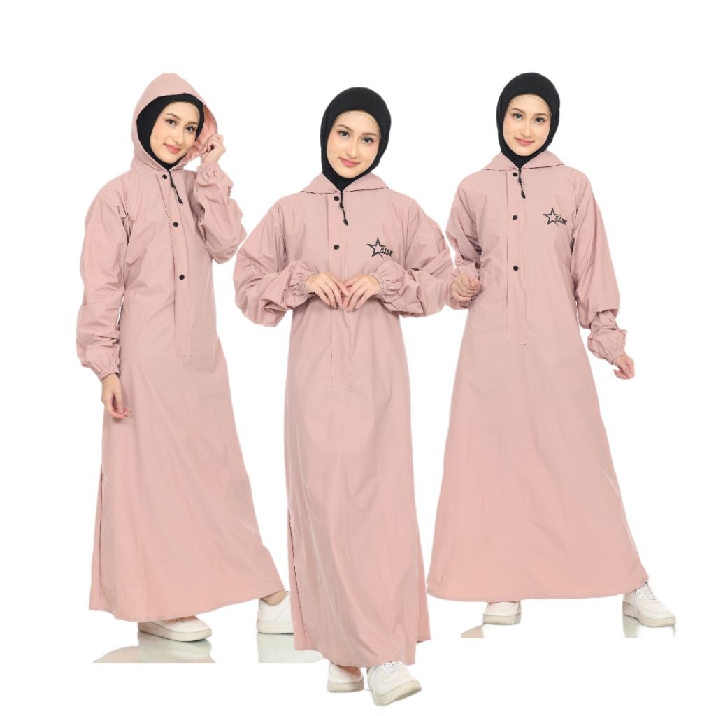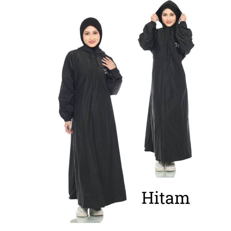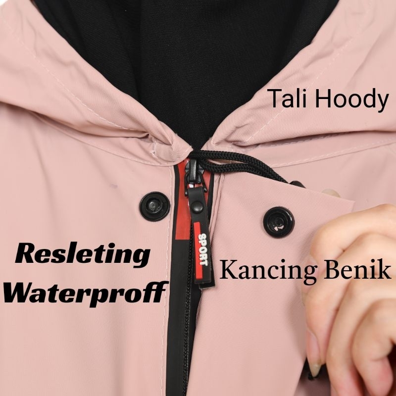 Jas Hujan Gamis Wanita Muslimah Anti Rembes Resleting Waterproff