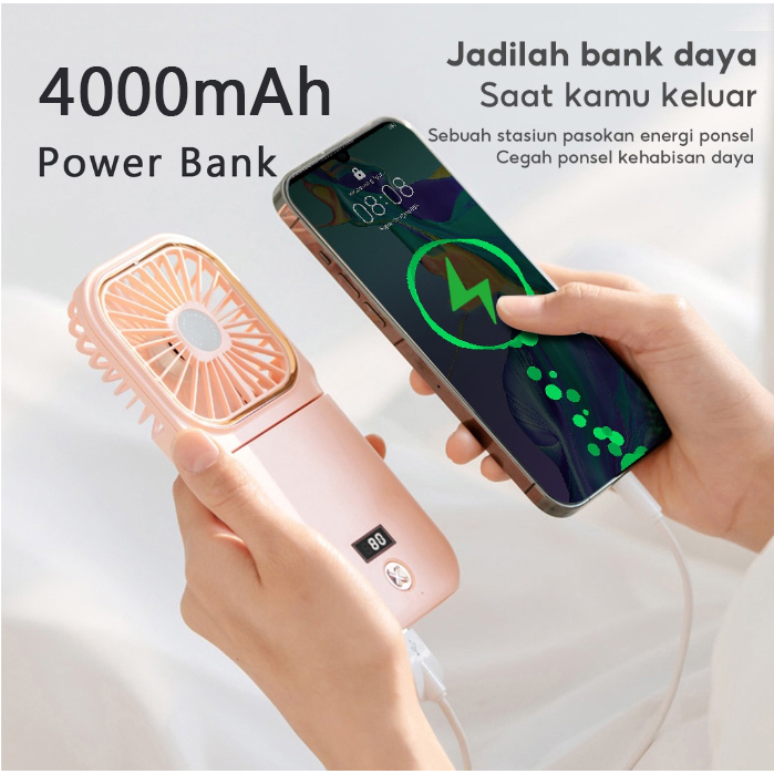 3 In 1Kipas Genggam Mini Lipat Kipas Angin /Power Bank 4000mAh /Pemegang Ponsel /Listrik Senyap Portabel