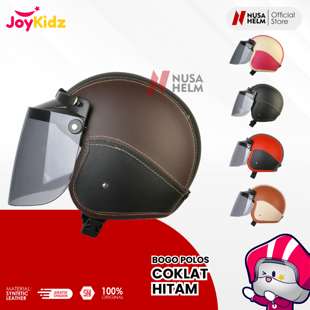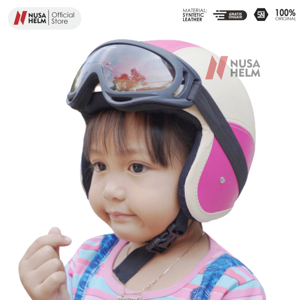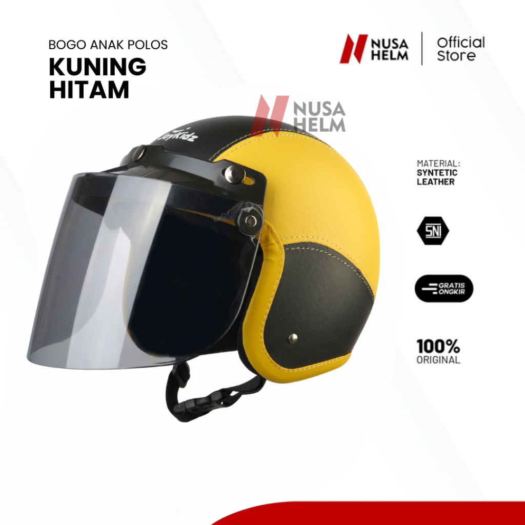 Helm Anak Bogo Polos Kaca Datar Usia 2-7 Tahun Cewe Cowo Motor Packing Kardus