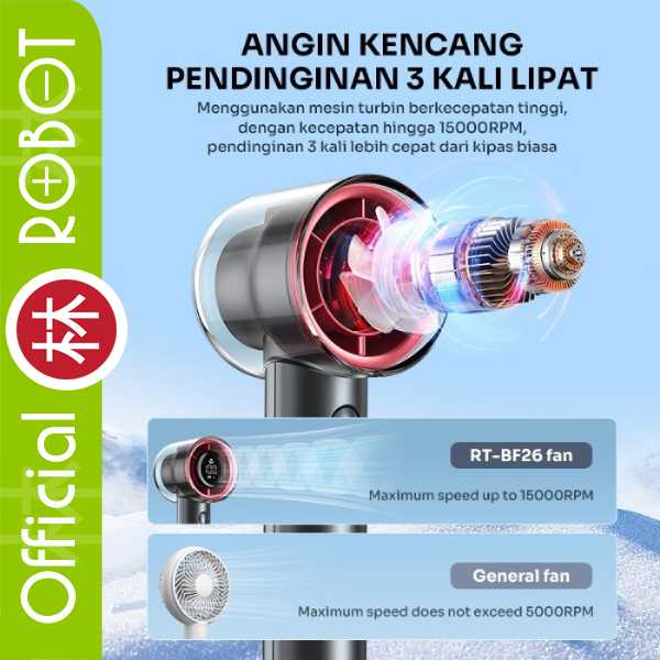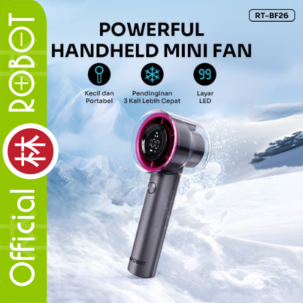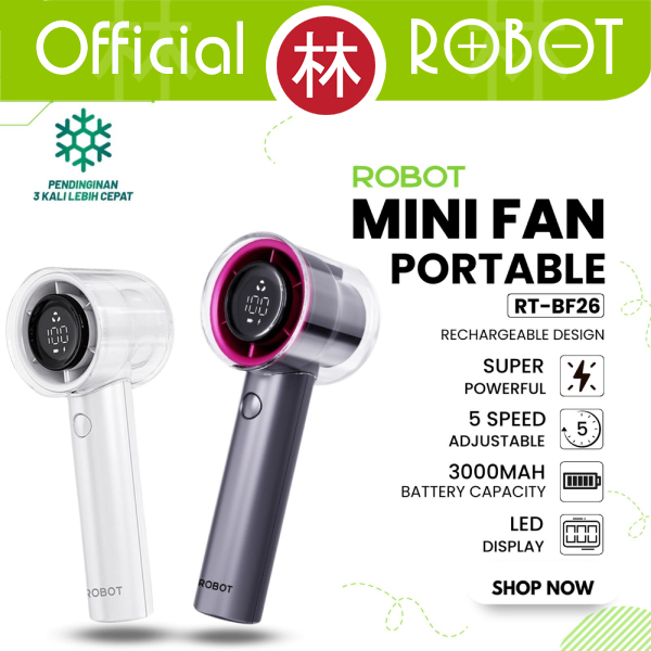 Robot RT-BF26 Mini Fan Portable Handheld Powerful Cooling LED Indicator Kipas Angin Portable 5 Speed