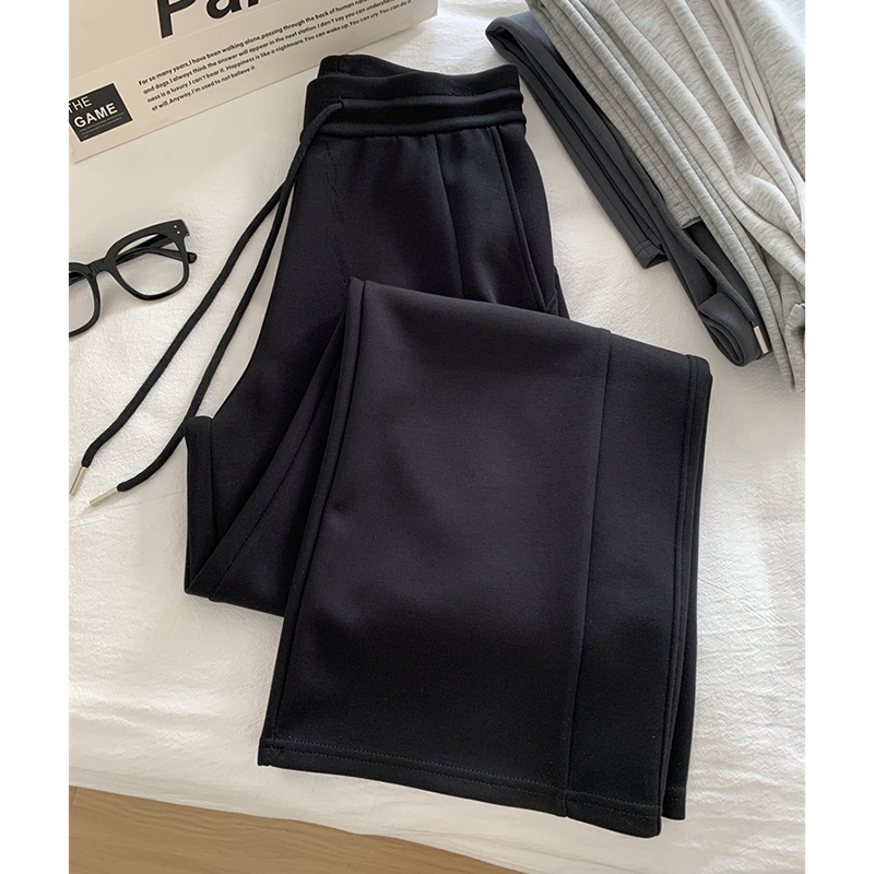 Celana Olahraga Wanita Gaya Korea Celana Lurus Kasual Serut Pinggang Tinggi Retro