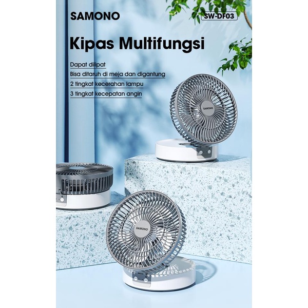 Samono Kipas Multifungsi USB Charge 3 Tingkat Kecepatan Portable Fan Bisa Dilipat Design Ergonomis SW-DF03 Grey