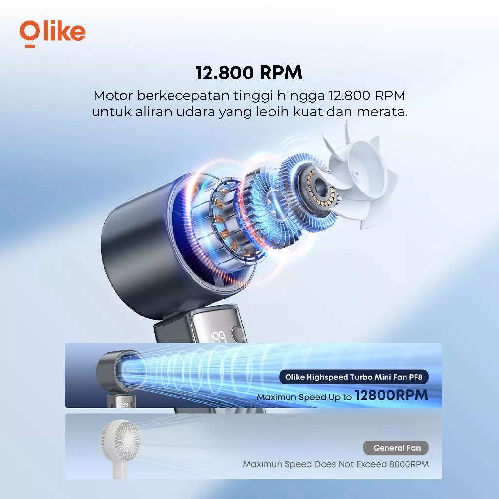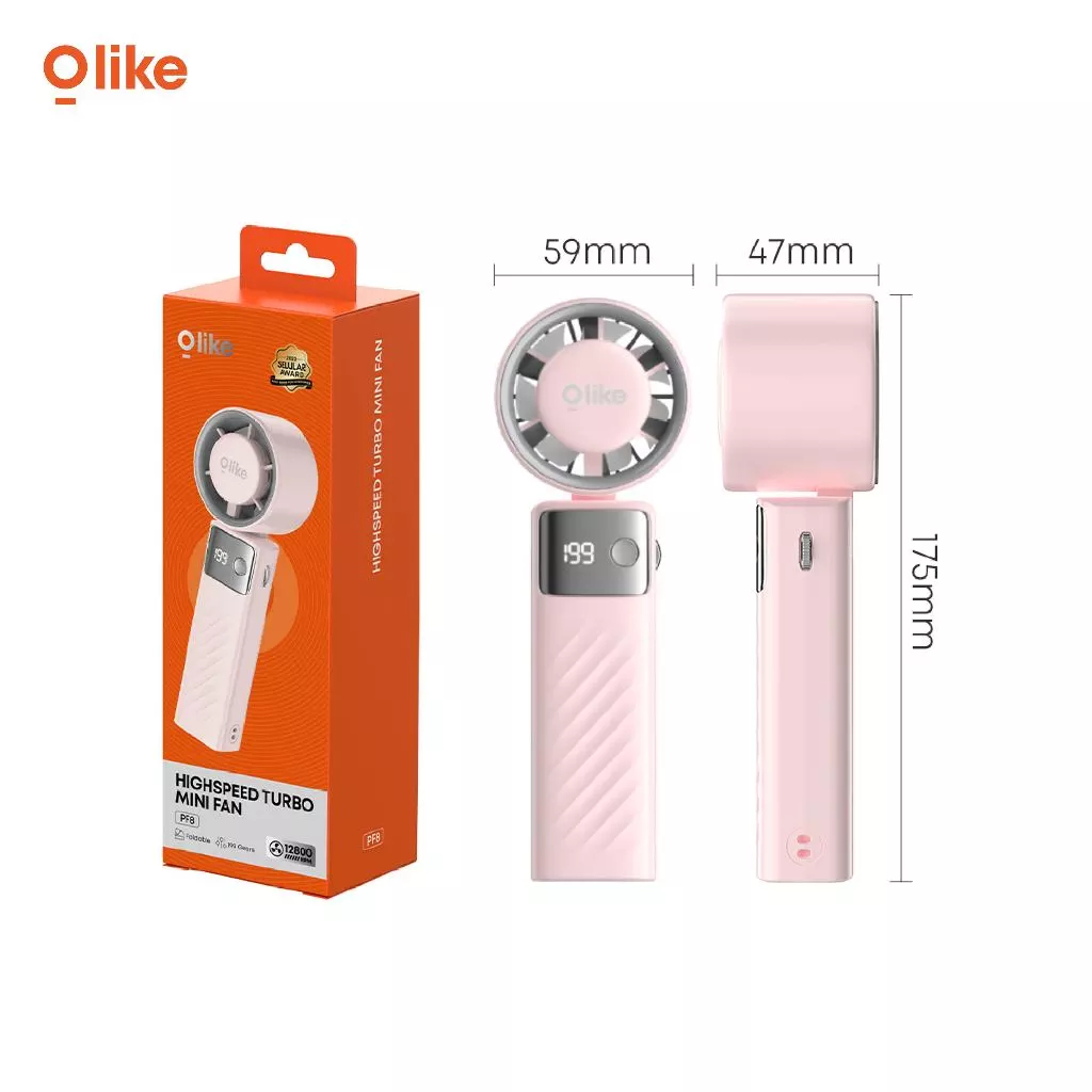 Kipas Angin Mini Portable OLIKE PF8 Turbo – Foldable, 199 Gear, 12.800 RPM, Adjustable Turbo Flow