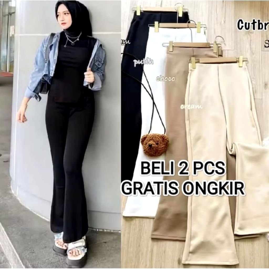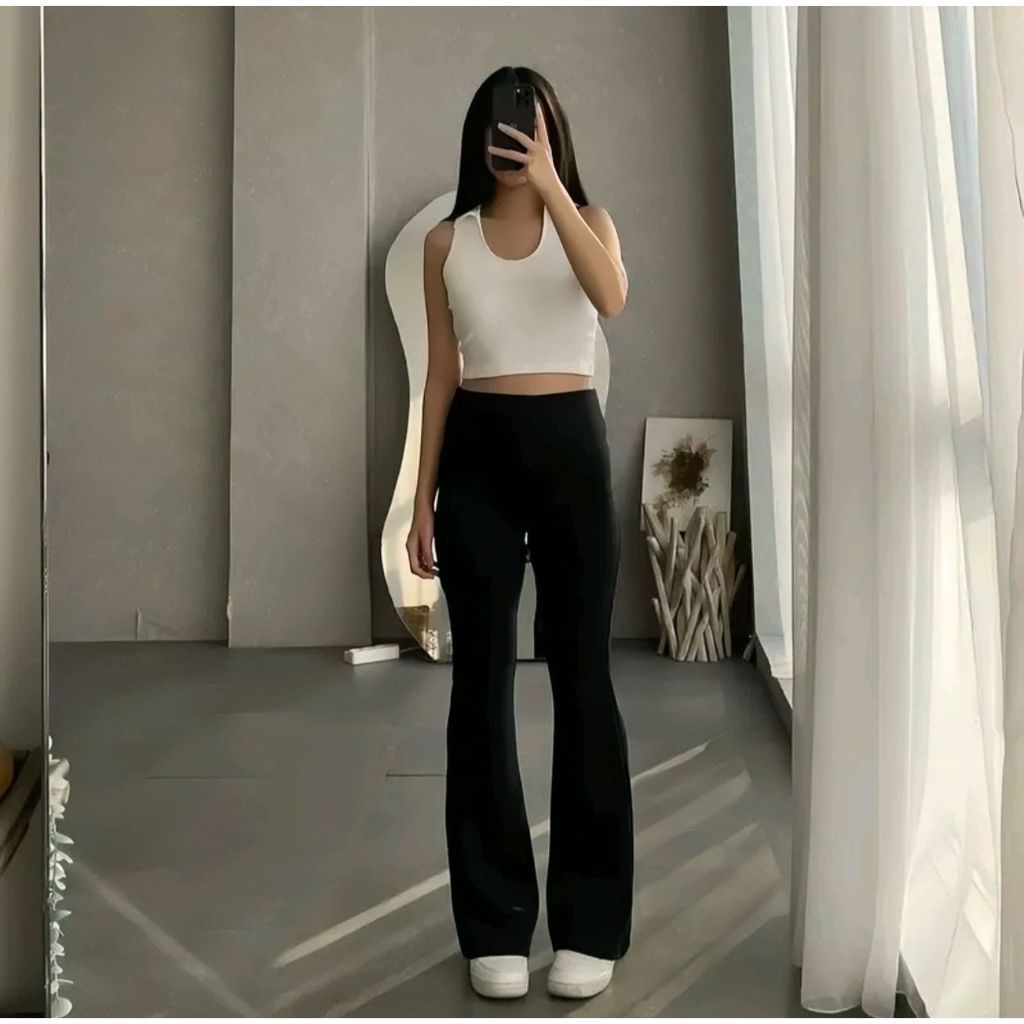 Celana Cutbray Flare Pants Scuba Highwaist Srecht Melar Basic Daily Pants Jumbo Premium