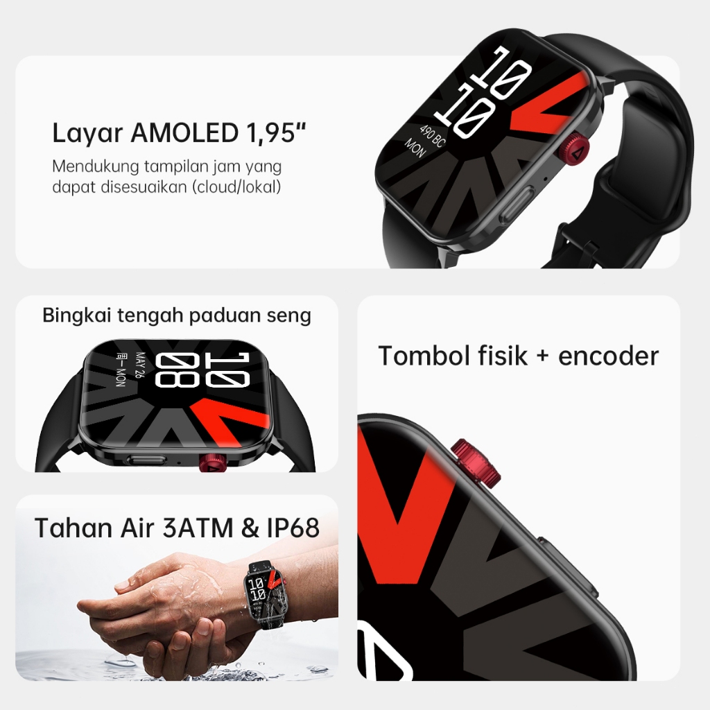 MAJDOMO Jam Tangan SmartWatch 1.95" AMOLED | Tahan Air 3ATM | 100+ Sports Modes | Ai Voice | Bluetooth Calls | AI Watch | Pemantauan Kesehatan | Jam Tangan Olahraga Pintar | Smart Watch Pria Wanita