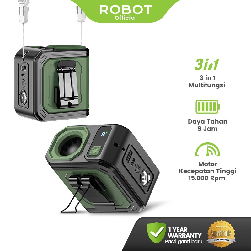 ROBOT Kipas Mini Gantung Pinggang Portabel 3-In1 4500mAh with 8 Level Kecepatan Angin Mini Fan Outdoor 15000rpm - RT-WF01