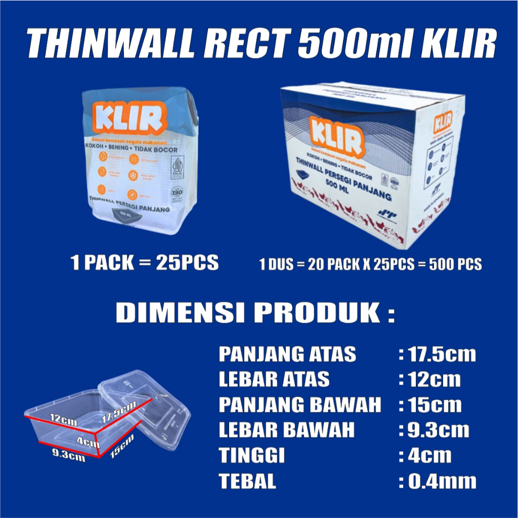 Thinwall Rectangle Alot 200ml 500ml 650ml 750ml 1000ml Kotak Makan Persegi Panjang Plastik Dus Gjk Medan