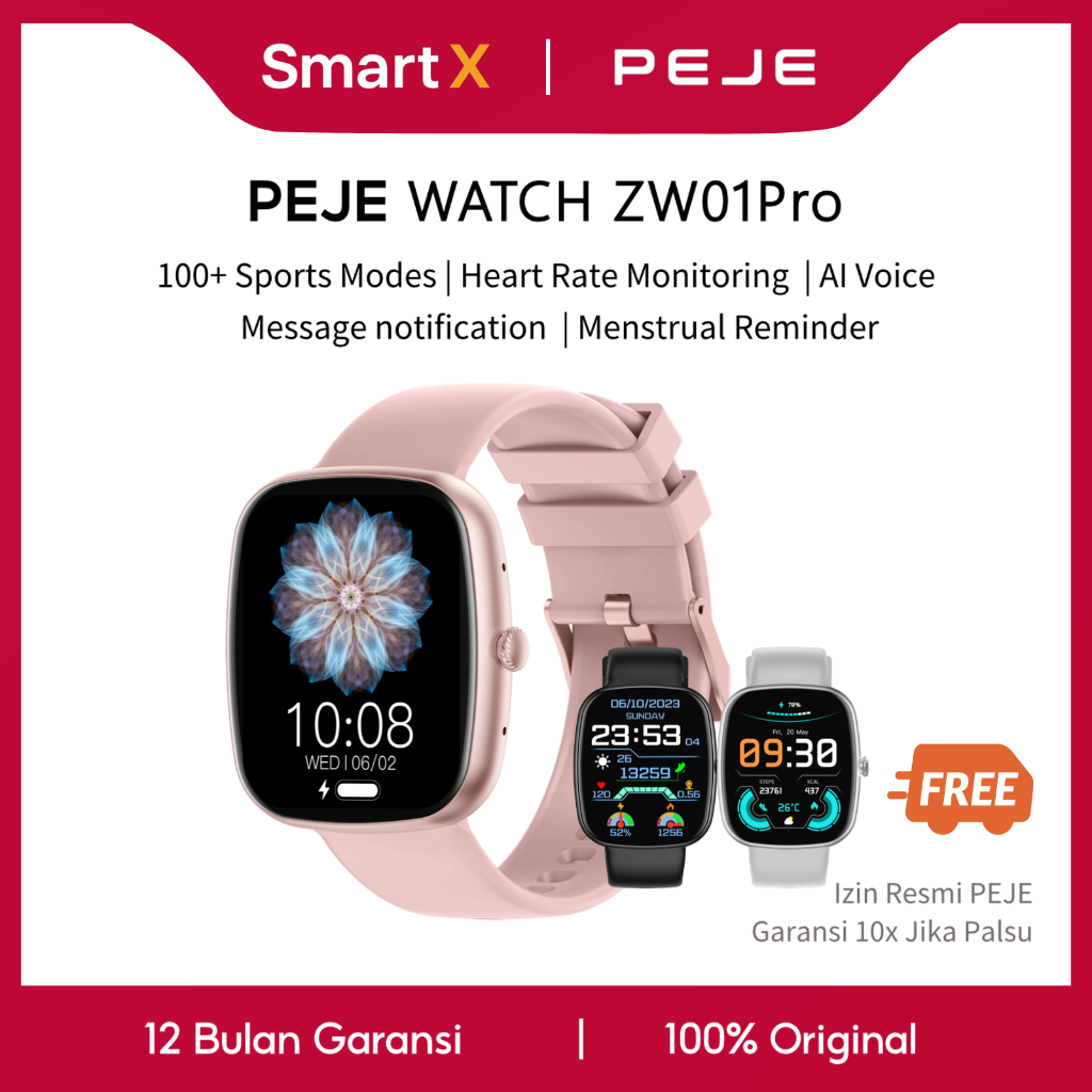 PEJE SmartwatchZW01 Pro Jam Tangan Pintar Desain Ringan, Panggilan Bluetooth, Wallpaper Custom, Kontrol Suara AI Garansi 1 Tahun SmartX