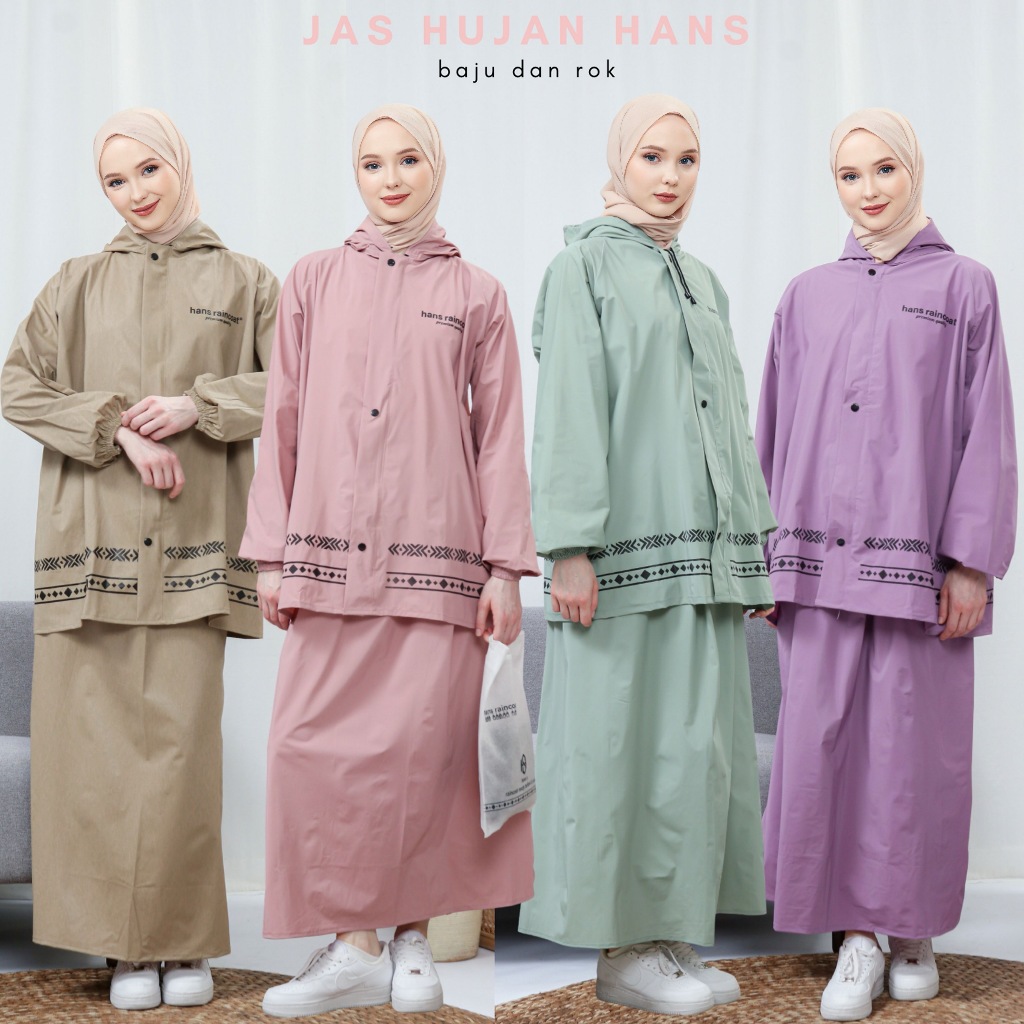 Jas hujan wanita Rok Mantel hujan setelan baju dan rok dewasa bahan Tebal kuat lentur Warna pastel