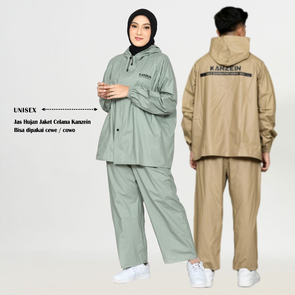 JAS HUJAN SETELAN STELAN JAKET CELANA ATAS BAWAH PRIA WANITA CEWE COWO MEREK KANZEIN