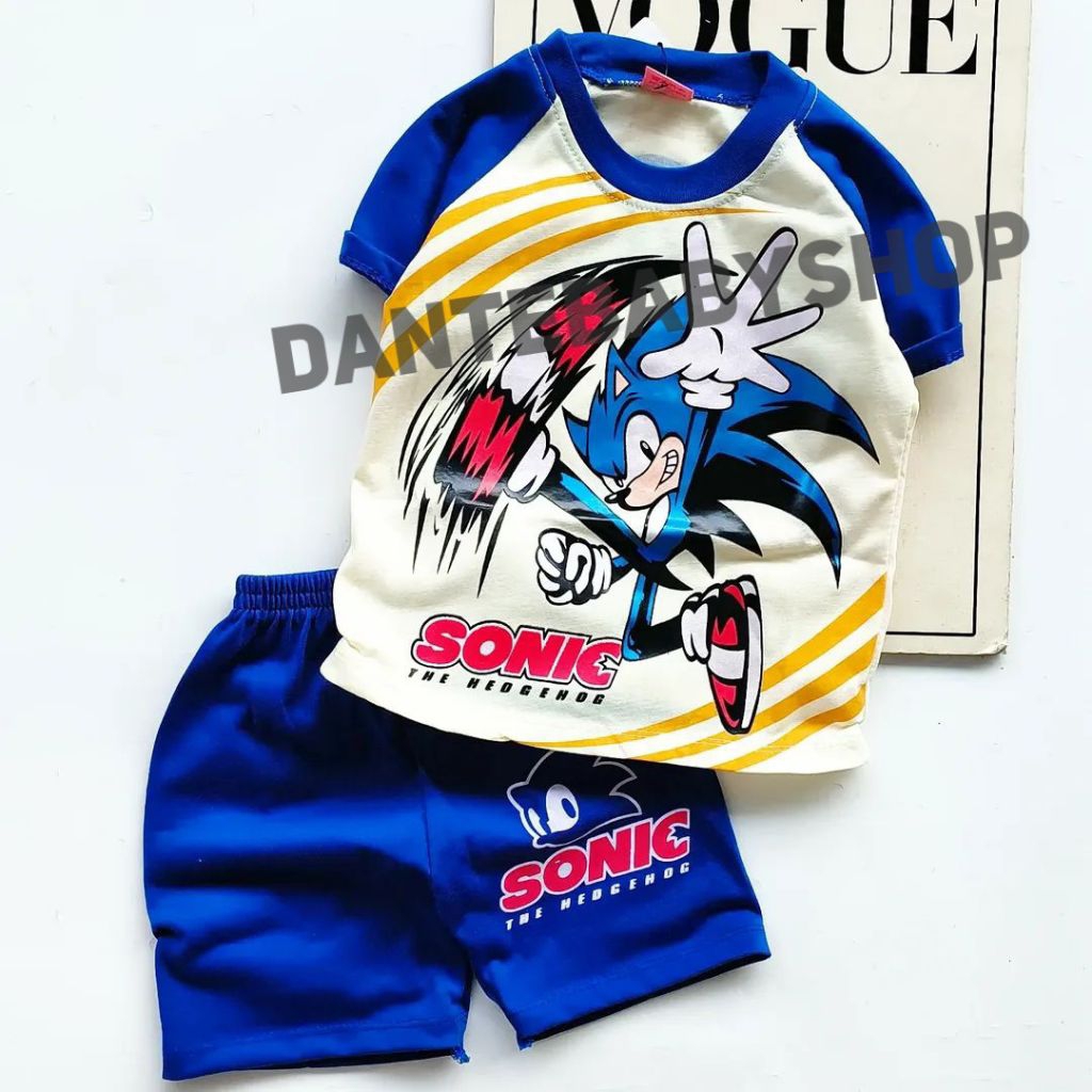 Baju Anak Laki Laki Motif Sonic Lucu Bisa Pakai Topi Bahan Bagus Untuk Umur 1-10 Tahun