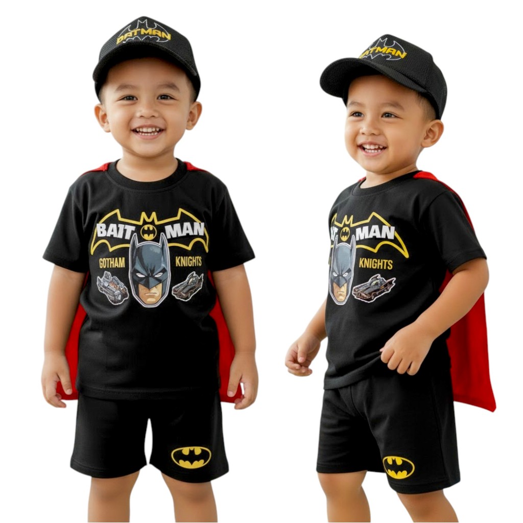 Baju Setelan Kostum Anak Laki Laki Superhero Batman Pendek Ada Sayap