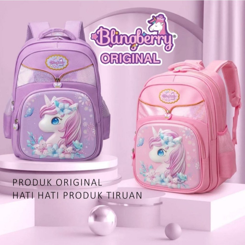 Blingberry Tas Sekolah Unicorn Glitter Waterproof Anti Air Tas Ransel Anak Sd Tas Sekolah Anak Perempuan Premium Blingb